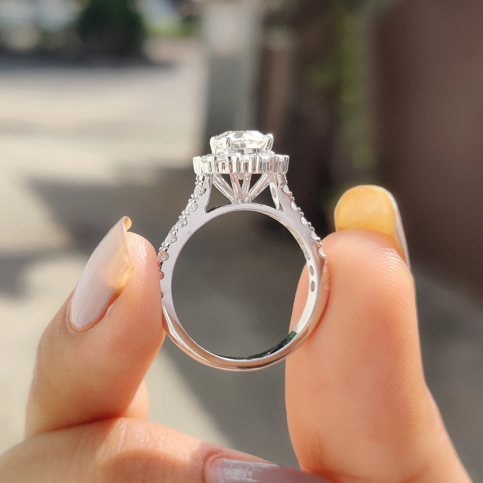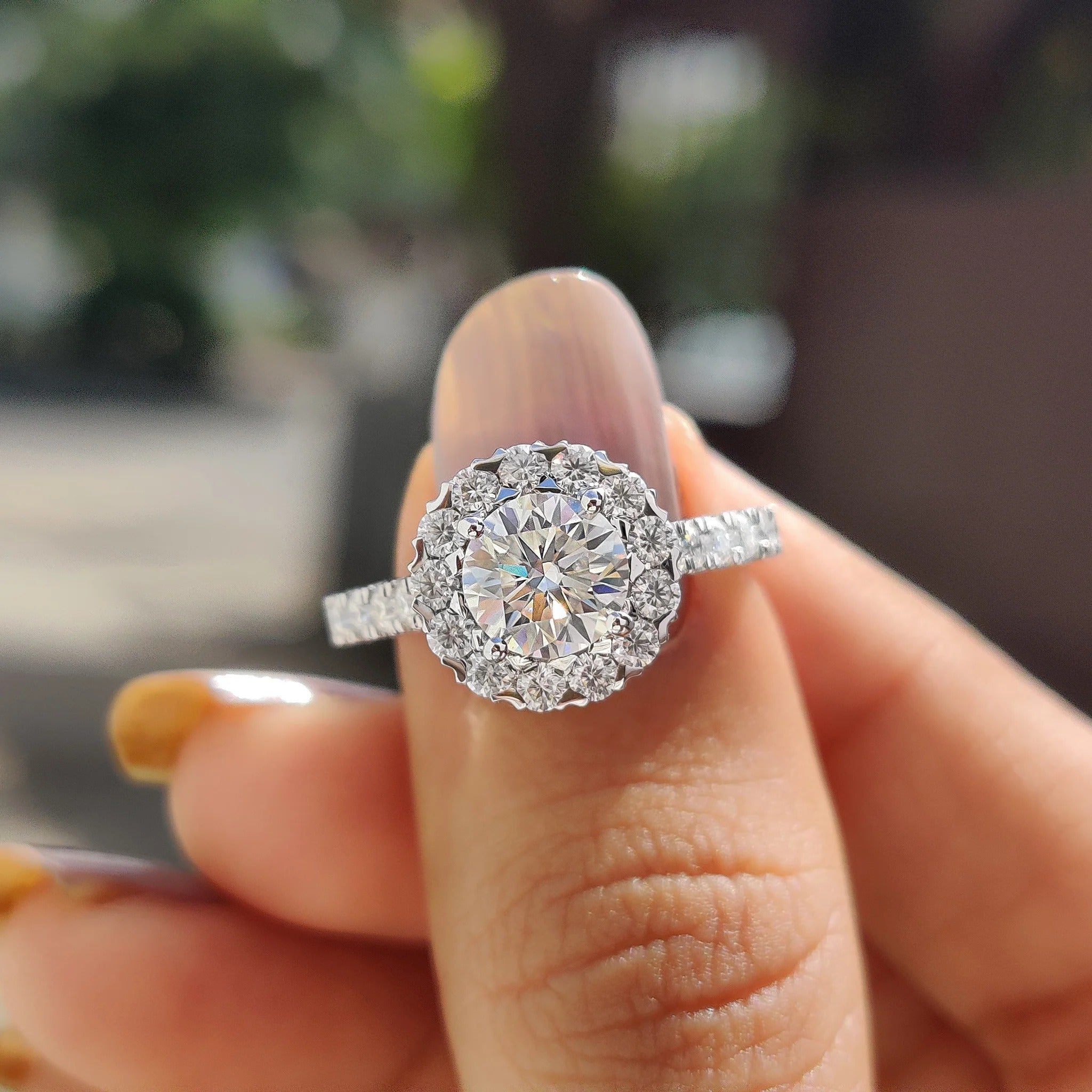 1.0 - 2.0 CT Round Cut Moissanite Halo Engagement Ring