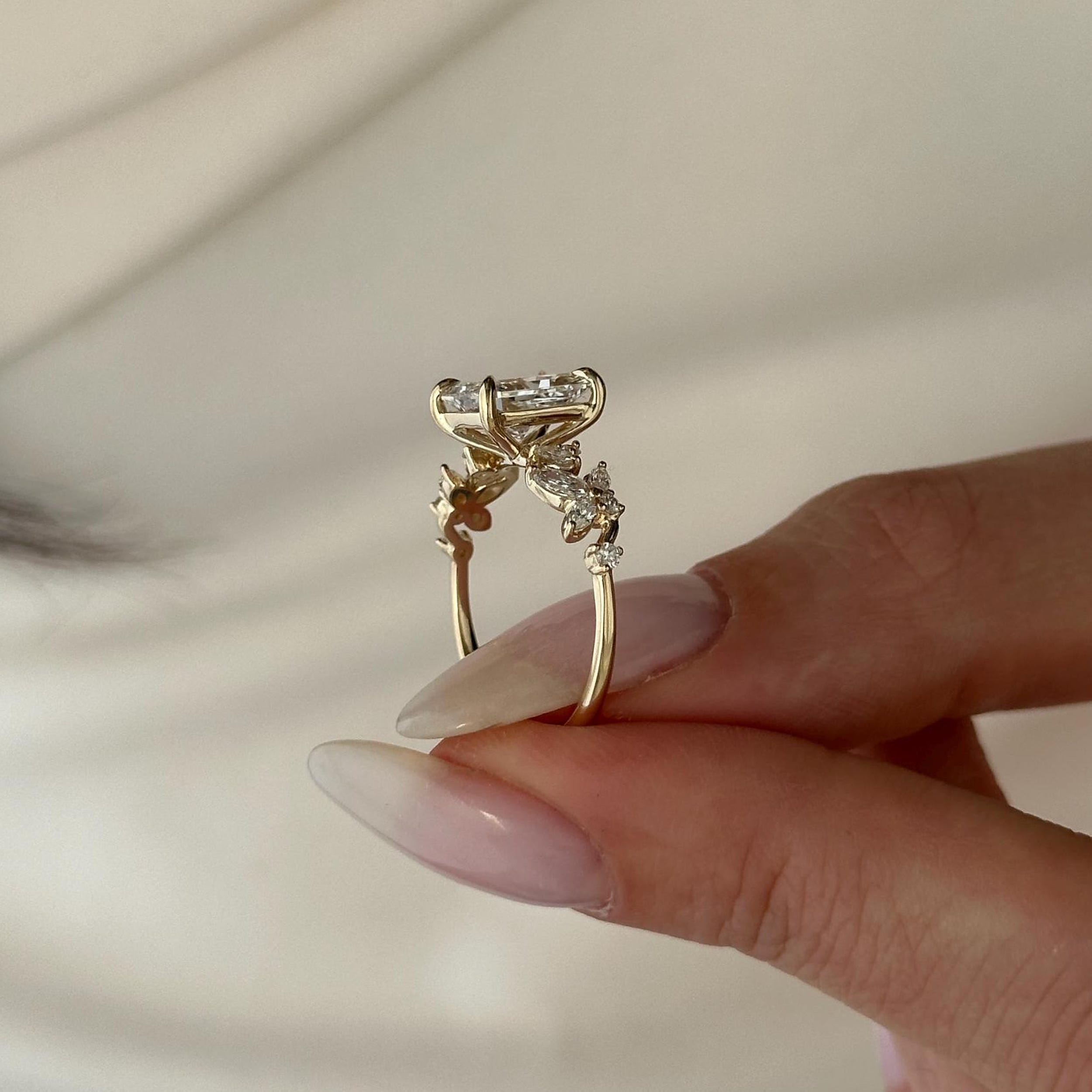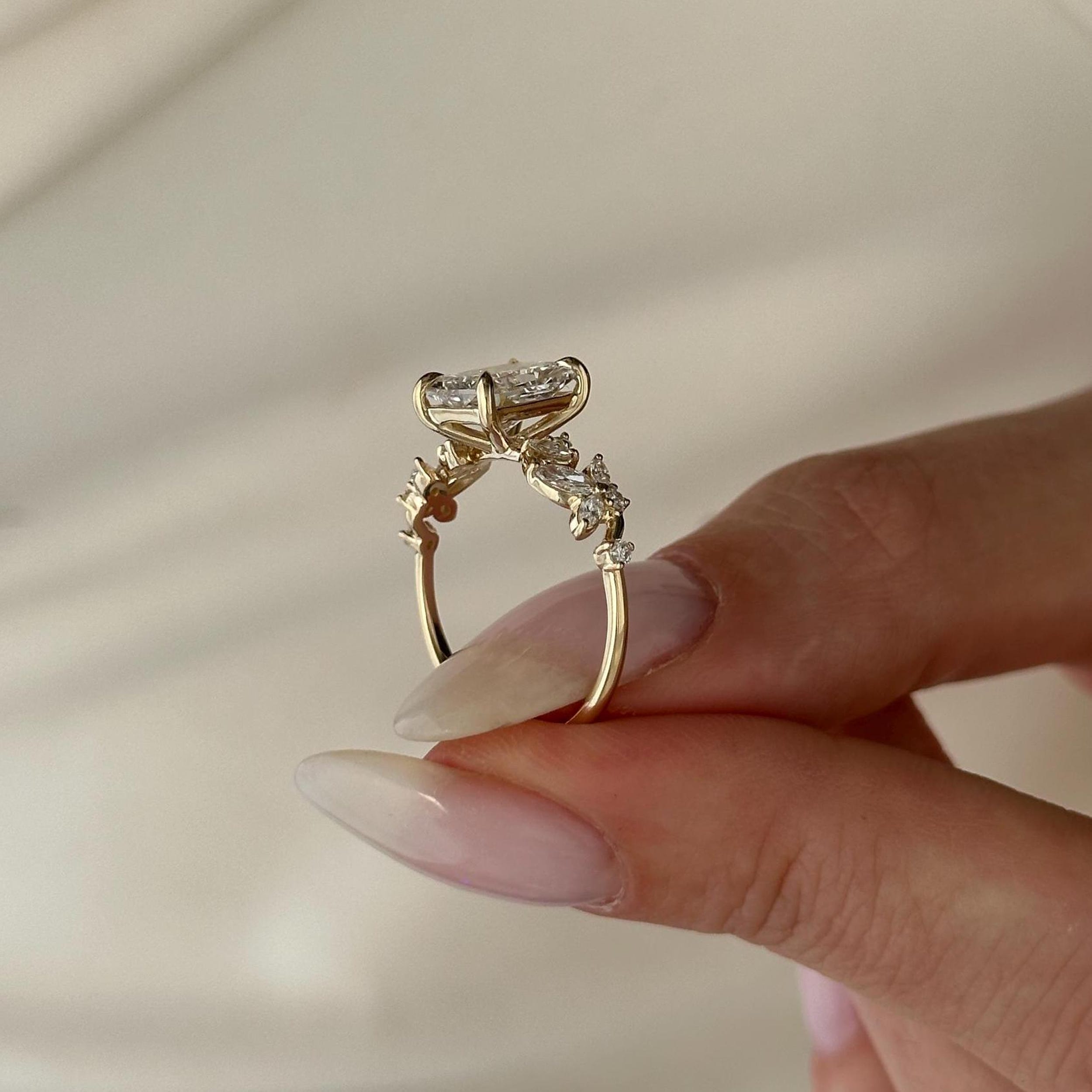 2.0 CT Radiant Cut Moissanite Cluster Style Engagement Ring
