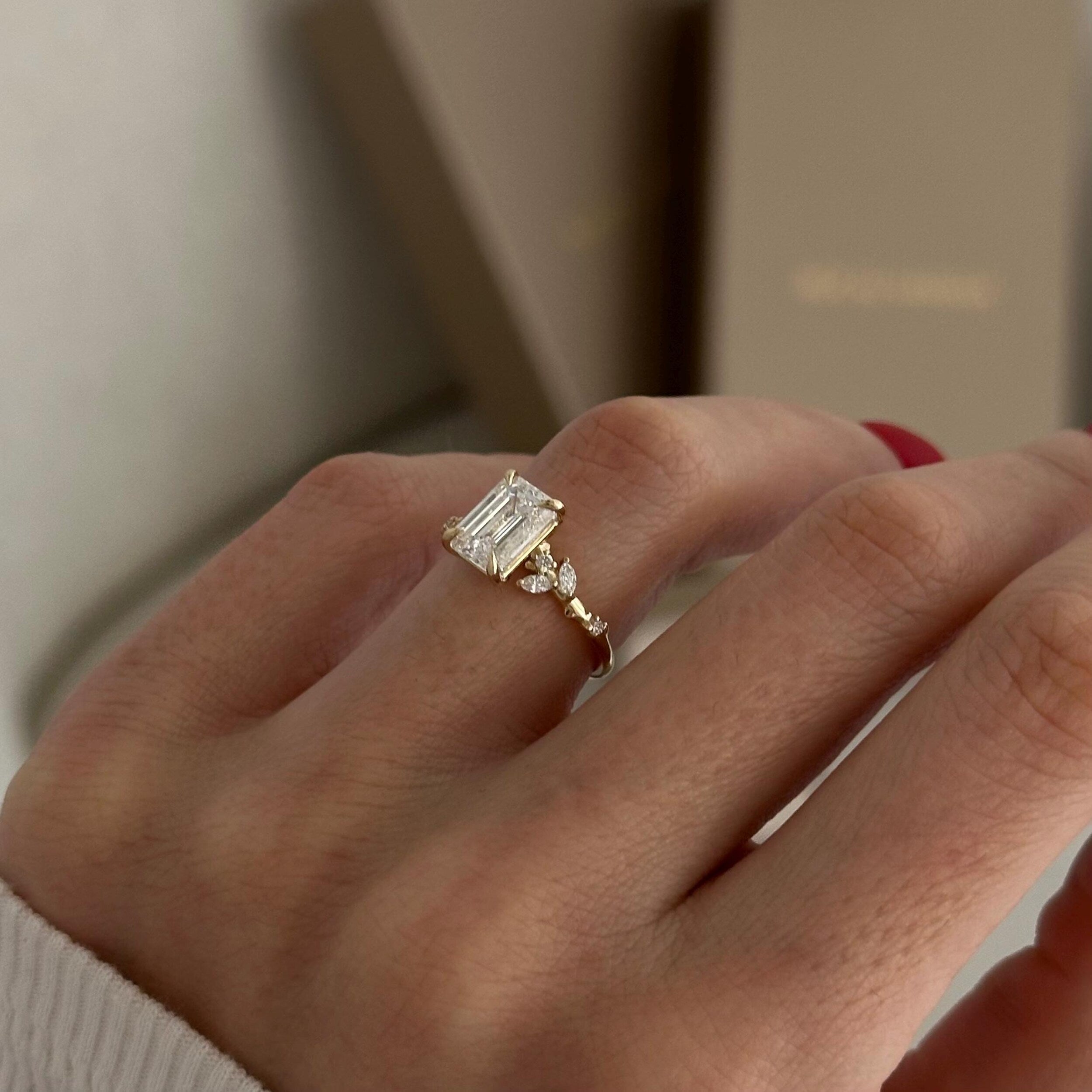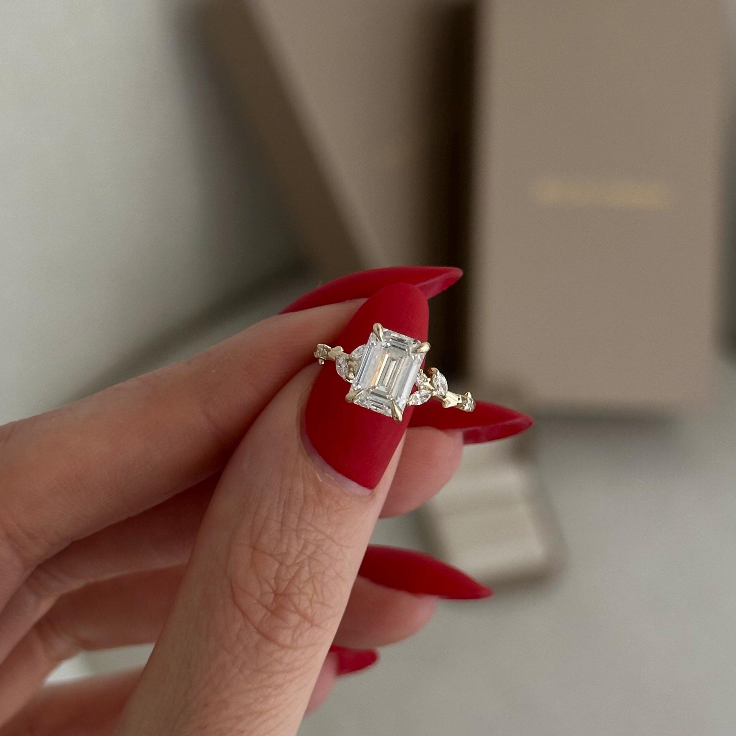 2.0 CT Emerald Cut Moissanite Cluster Style Engagement Ring – Darby Diamonds LLC