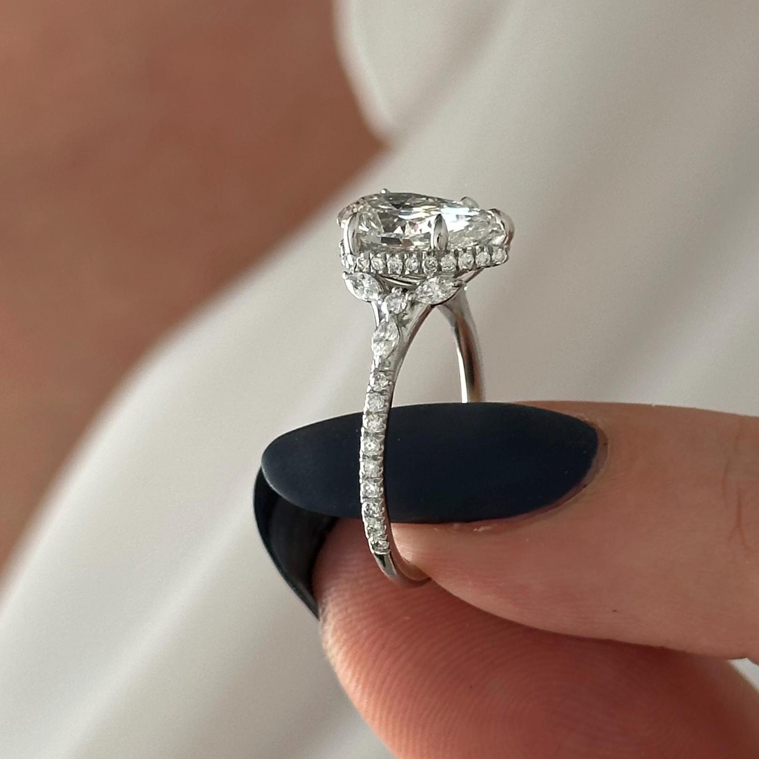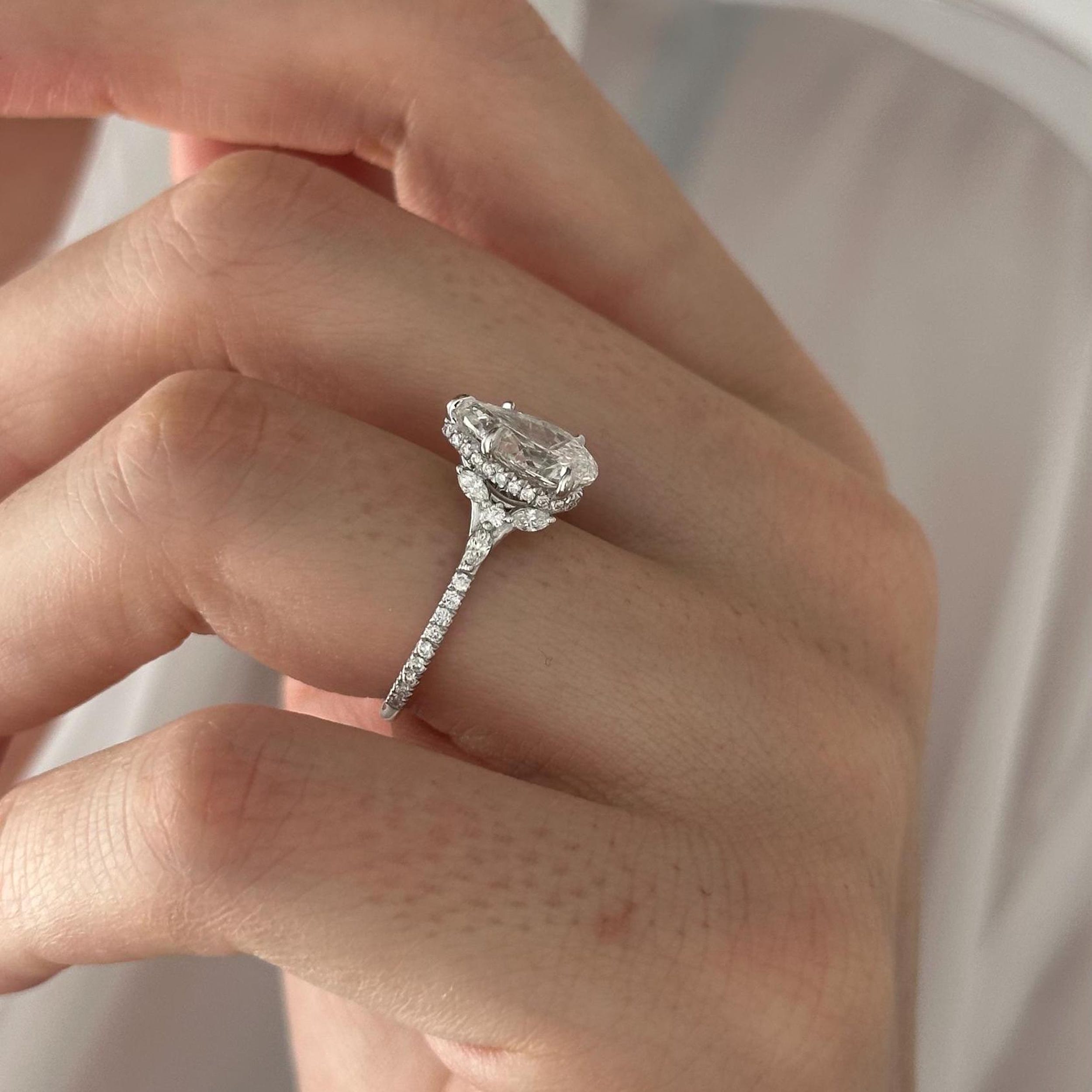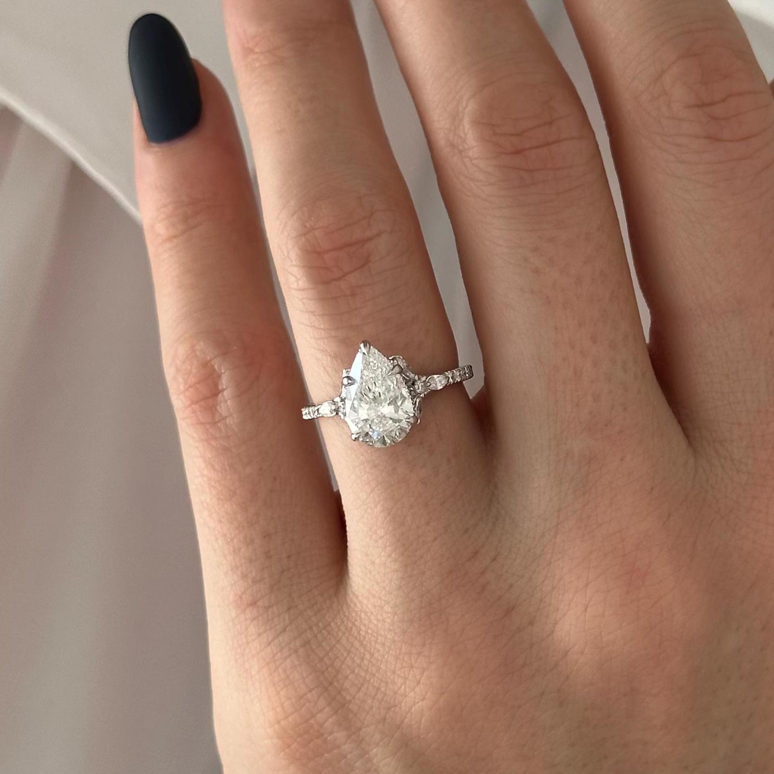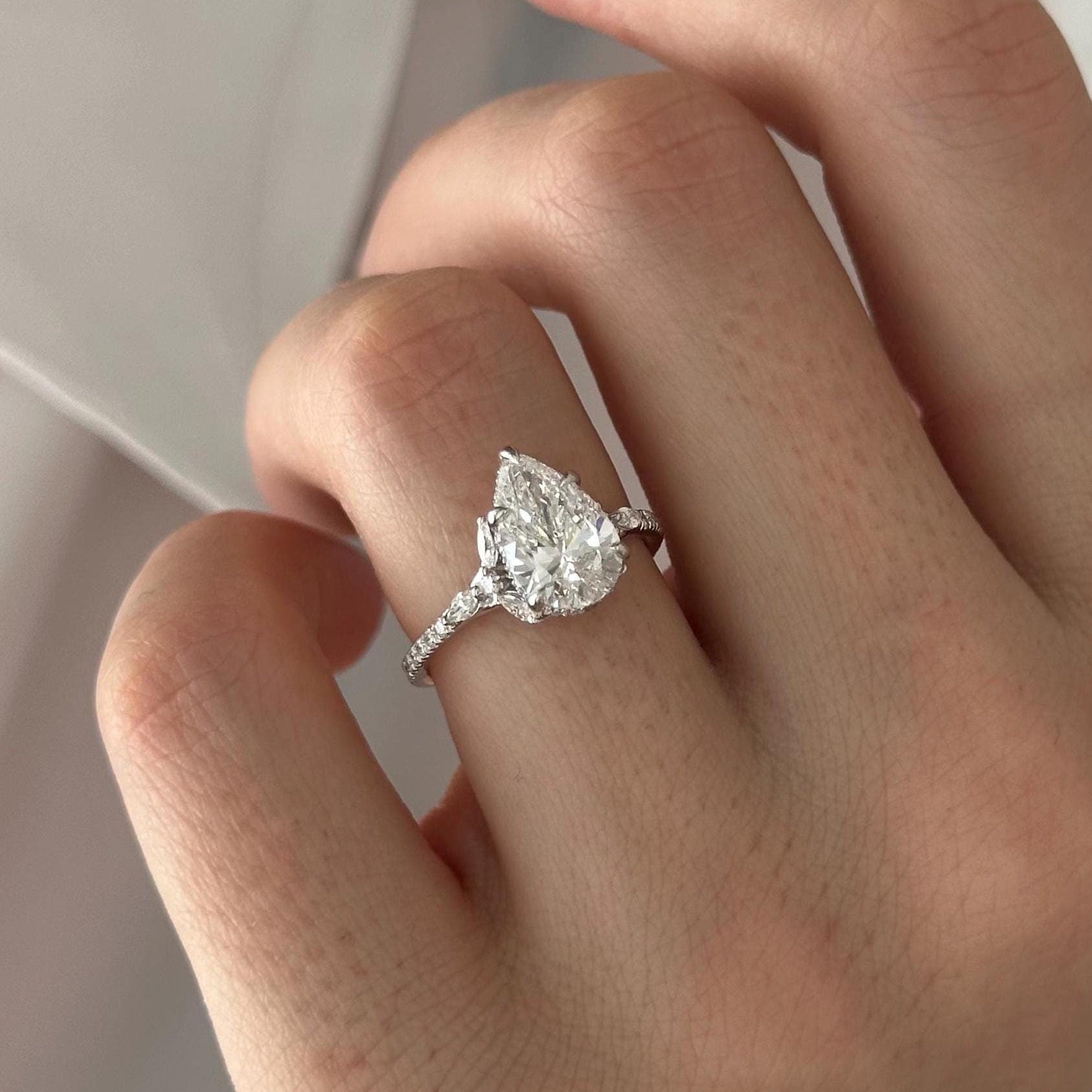 2.0 CT Pear Cut Moissanite Pave & Hidden Halo Style Engagement Ring – Darby Diamonds LLC