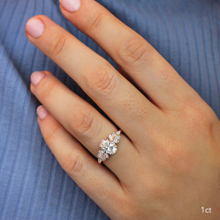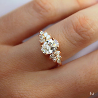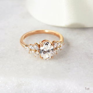 1.0 CT Oval Moissanite Cluster Engagement Ring