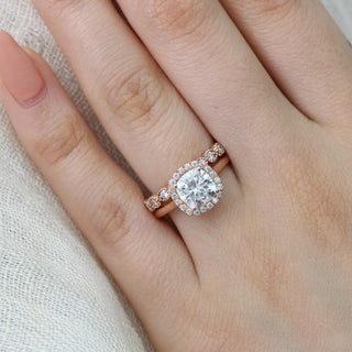 1.0 CT Cushion Cut Moissanite Halo Bridal Ring Set