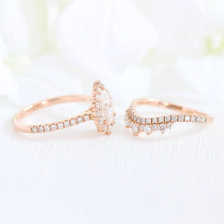 1.0CT Pear Cut Moissanite Halo Bridal Ring Set