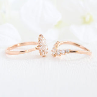 1.0CT Pear Cut Moissanite Halo Bridal Ring Set