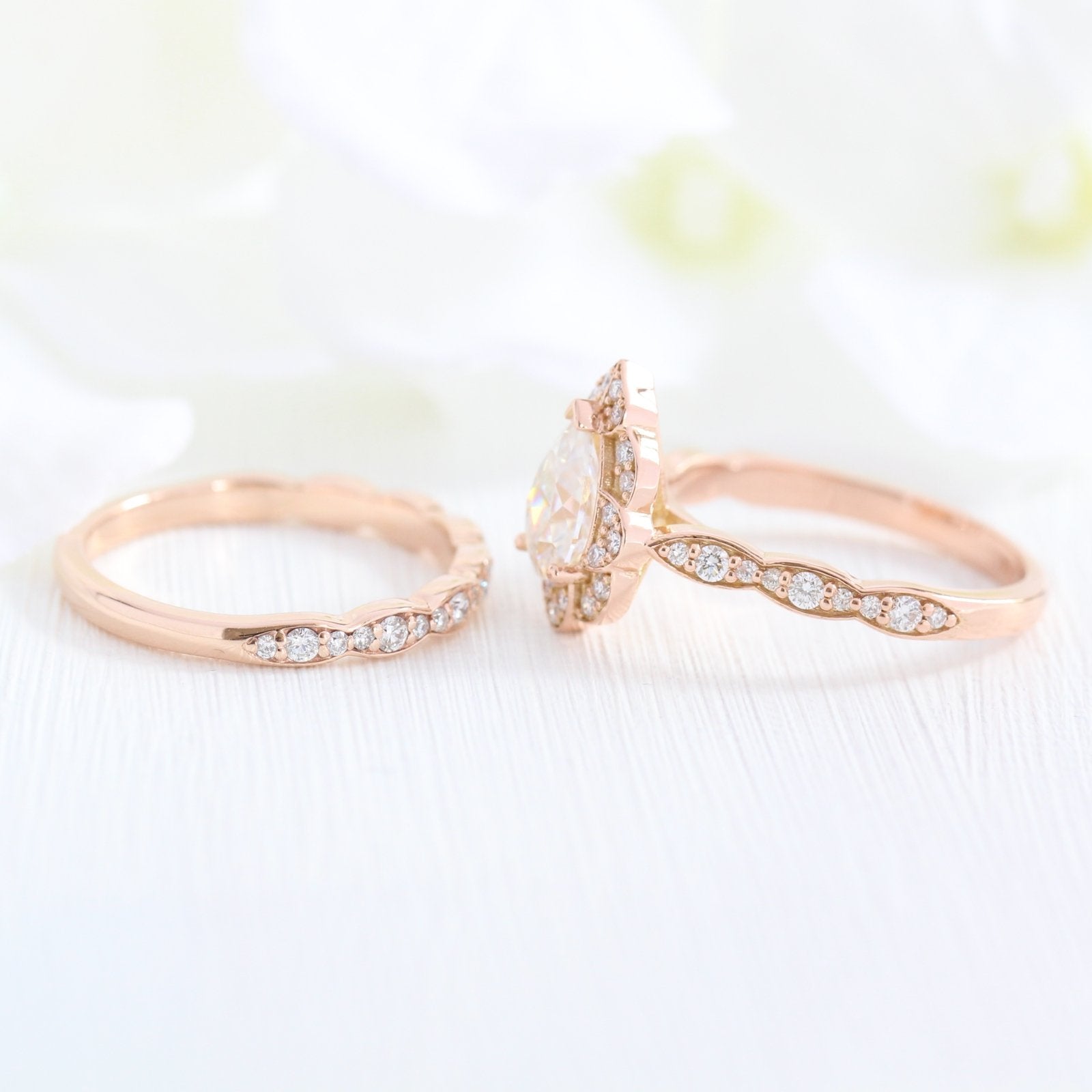1.0CT Pear Cut Moissanite Vintage Halo Bridal Ring Set – Darby Diamonds LLC