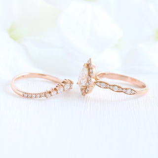 1.0CT Pear Cut Moissanite Halo Bridal Ring Set
