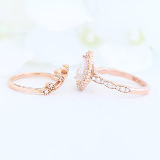 1.50CT Pear Cut Moissanite Halo Bridal Ring Set
