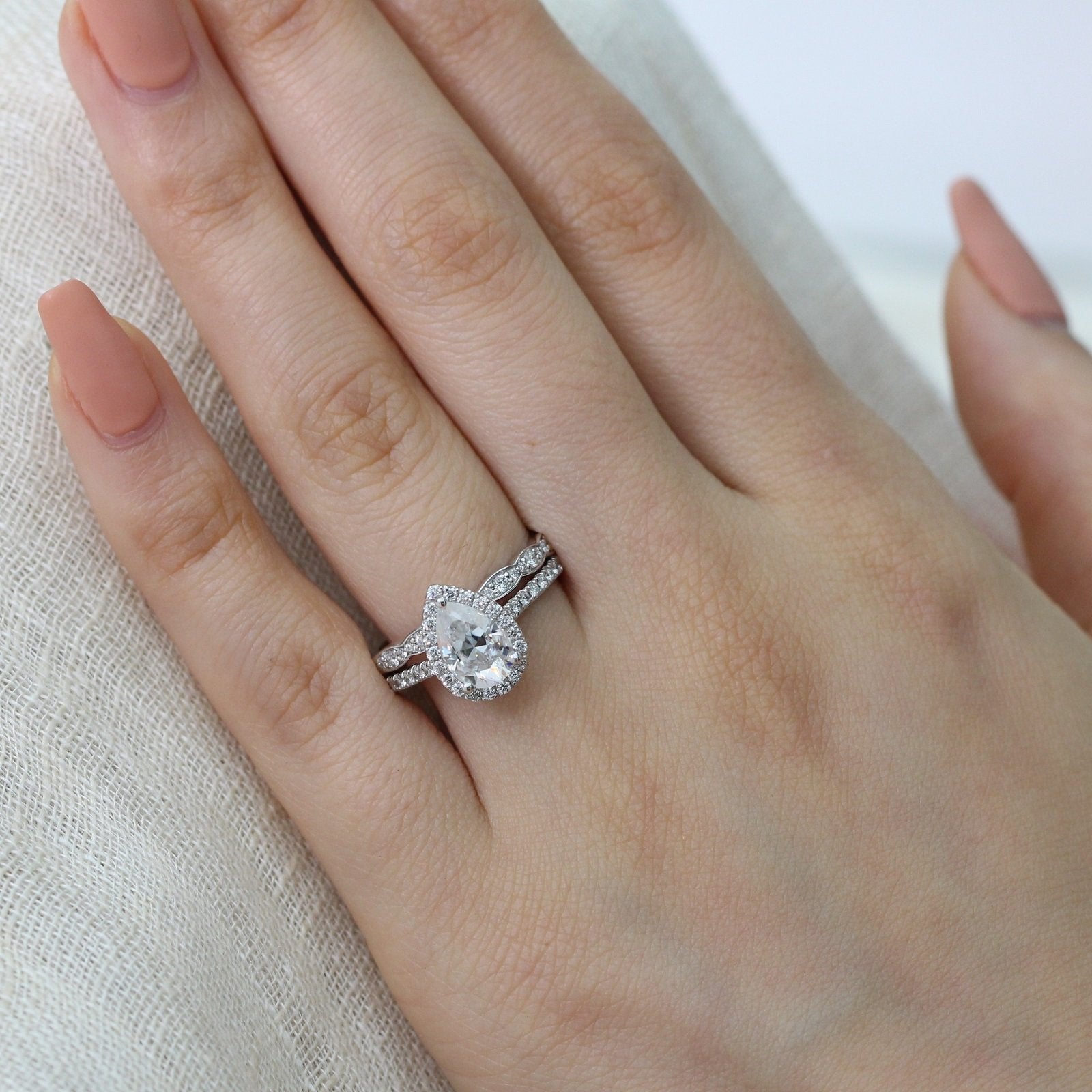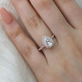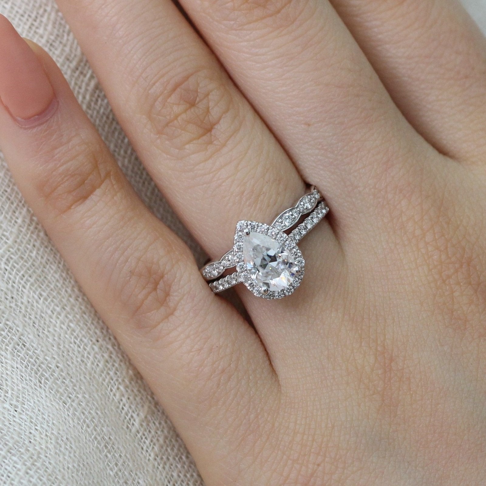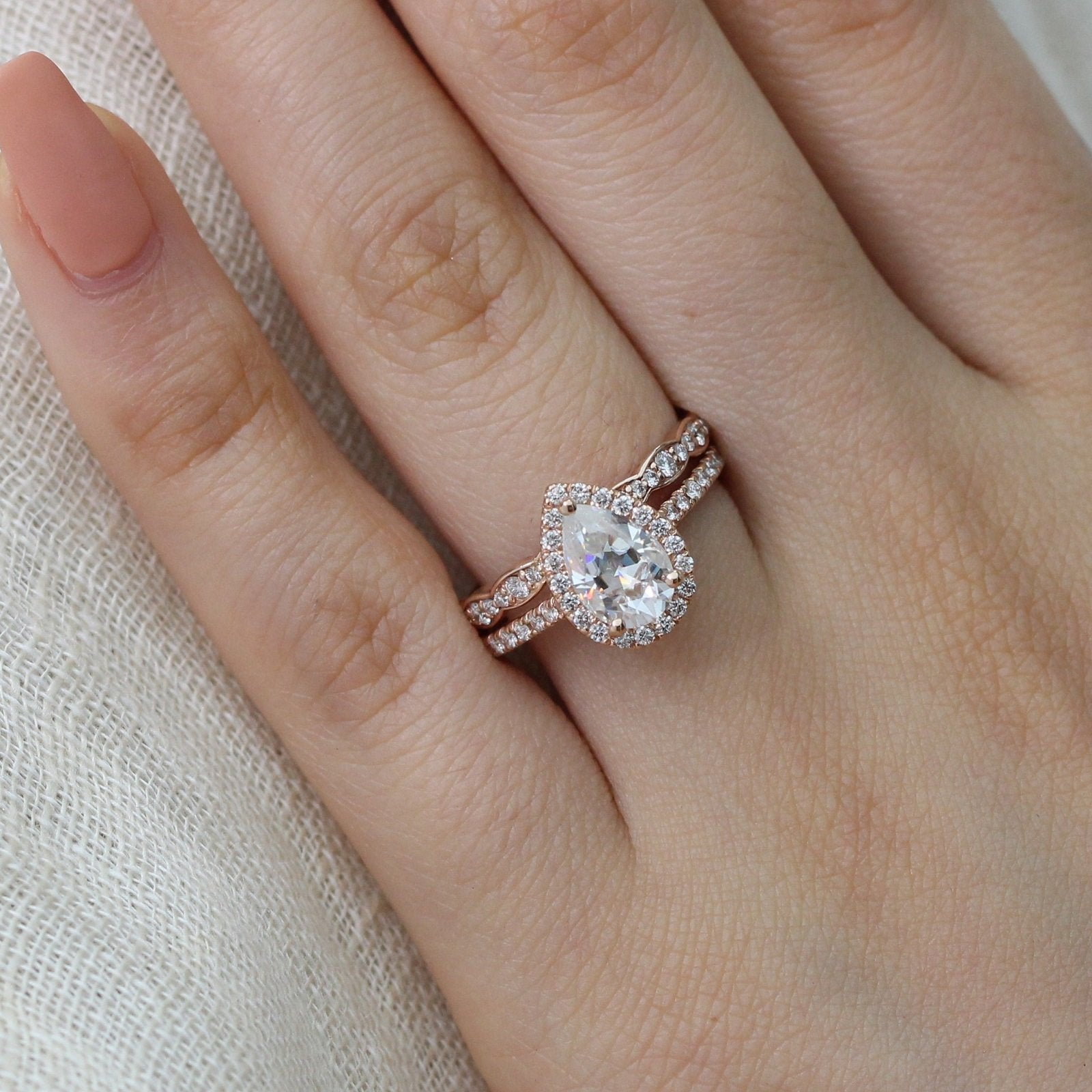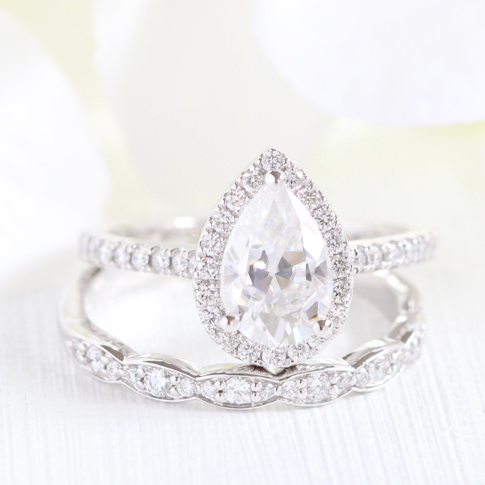 1.50CT Pear Cut Moissanite Halo Bridal Ring Set – Darby Diamonds LLC