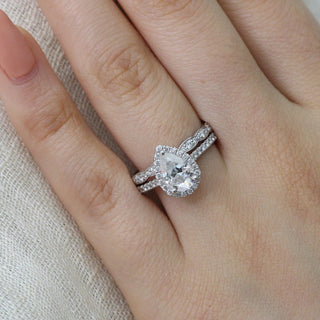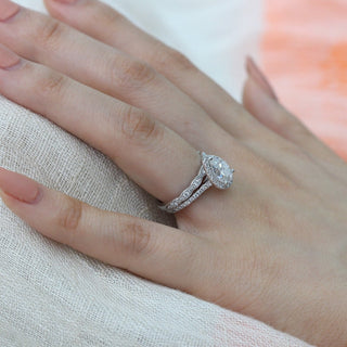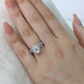 1.50CT Pear Cut Moissanite Halo Bridal Ring Set