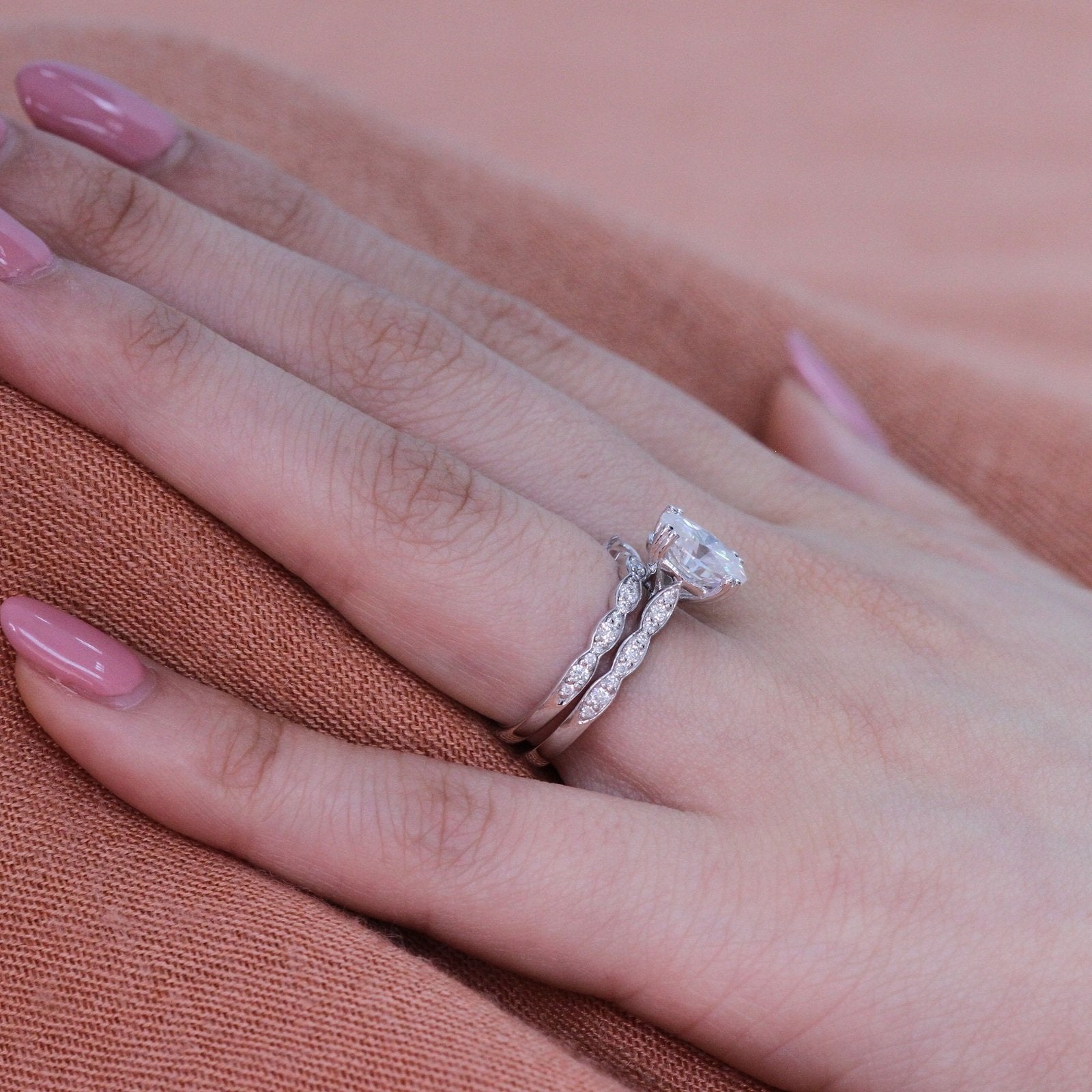 2.0CT Oval Cut Moissanite Vintage Halo Bridal Ring Set – Darby Diamonds LLC