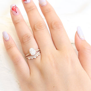 2.0CT Oval Moissanite Pave Bridal Ring Set