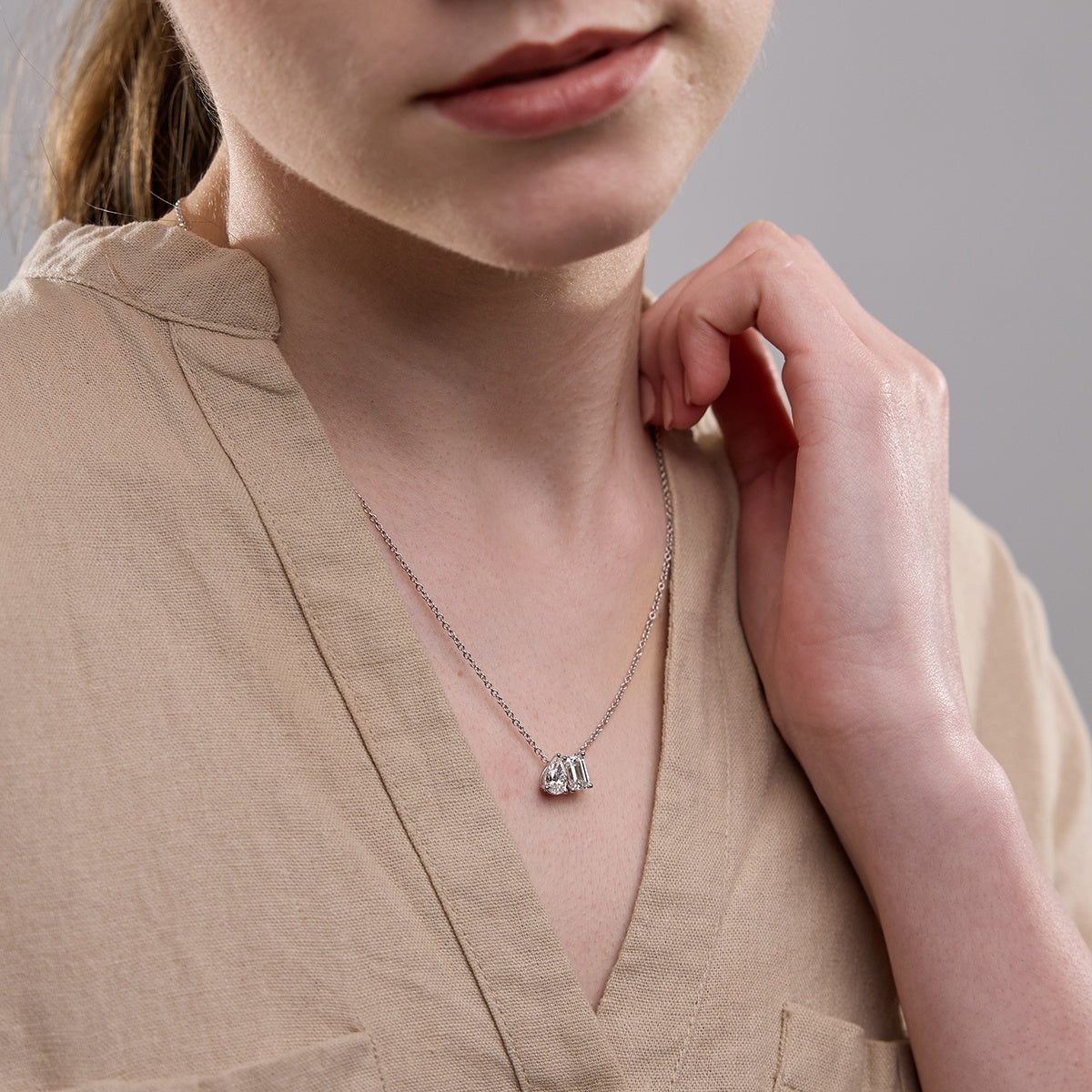 2.75 TCW Emerald & Round Moissanite Diamond Two Stone Necklace – Darby Diamonds LLC