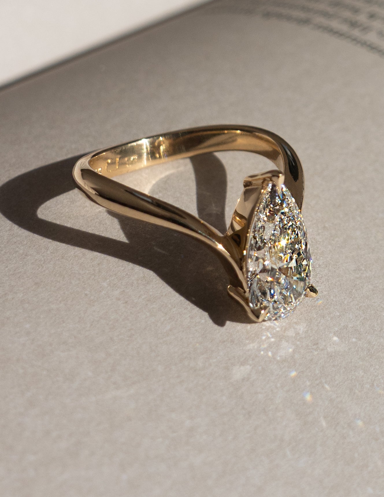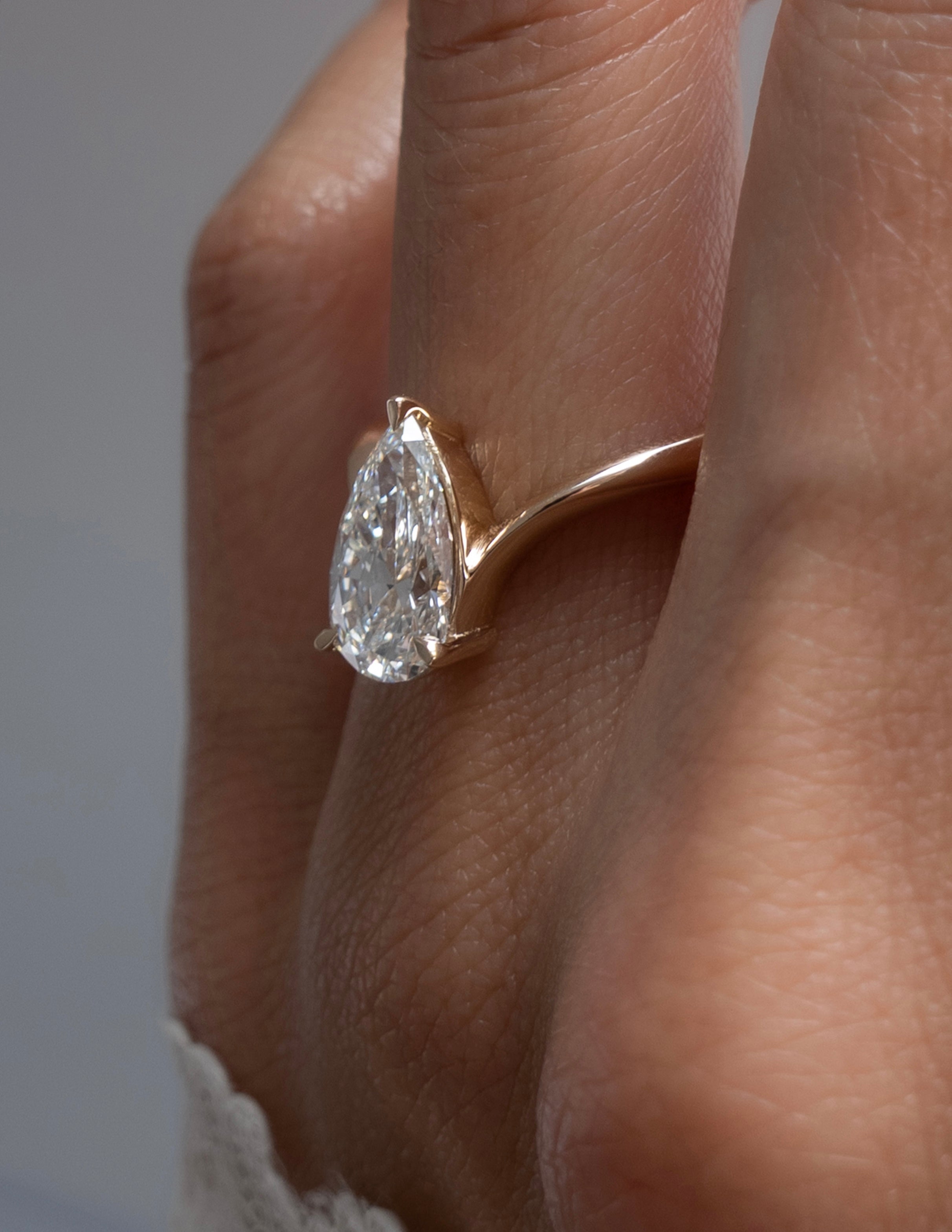1.0 -3.0 CT Pear Shaped Lab Grown Diamond Soliatire Style Engagement Ring