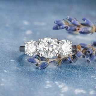 1.0CT Round Cut Three Stone Style Moissanite Engagement Ring – Darby Diamonds LLC