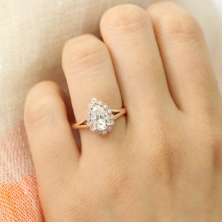 1.50 CT Pear Cut Moissanite Halo Split Shank Style Engagement Ring