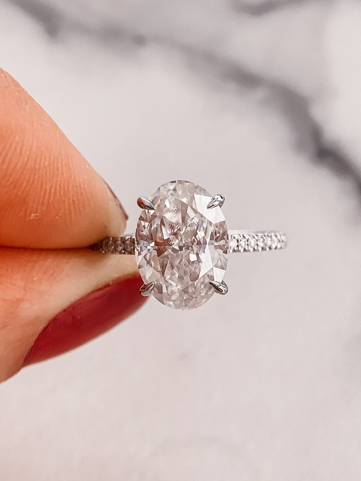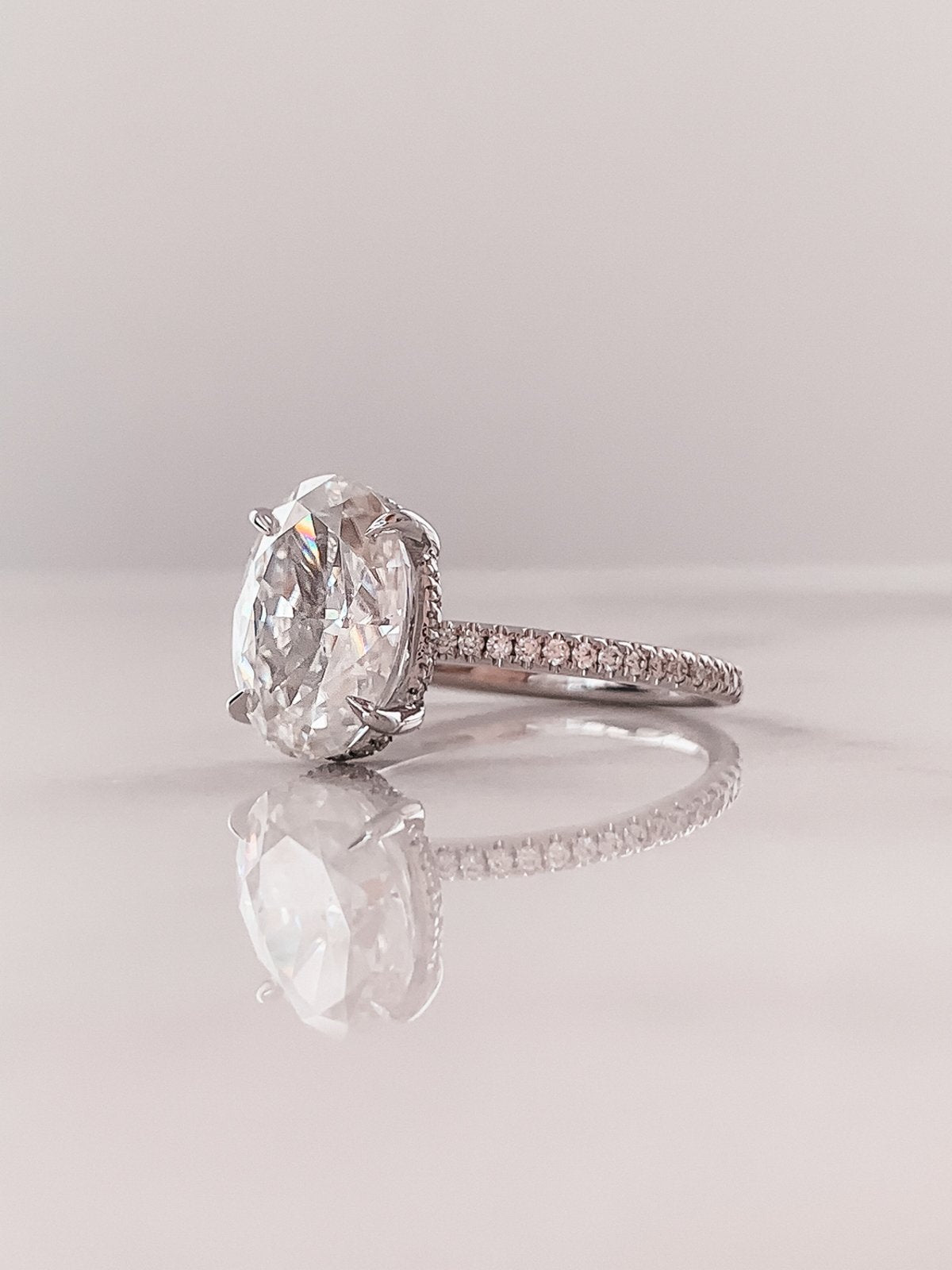 Oval Moissanite Hidden Halo Pave Setting Engagement Ring – Darby Diamonds LLC