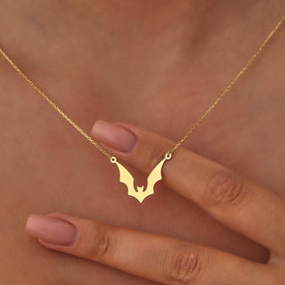 Solid Plain Gold Halloween Dainty Bat Pendant Necklace