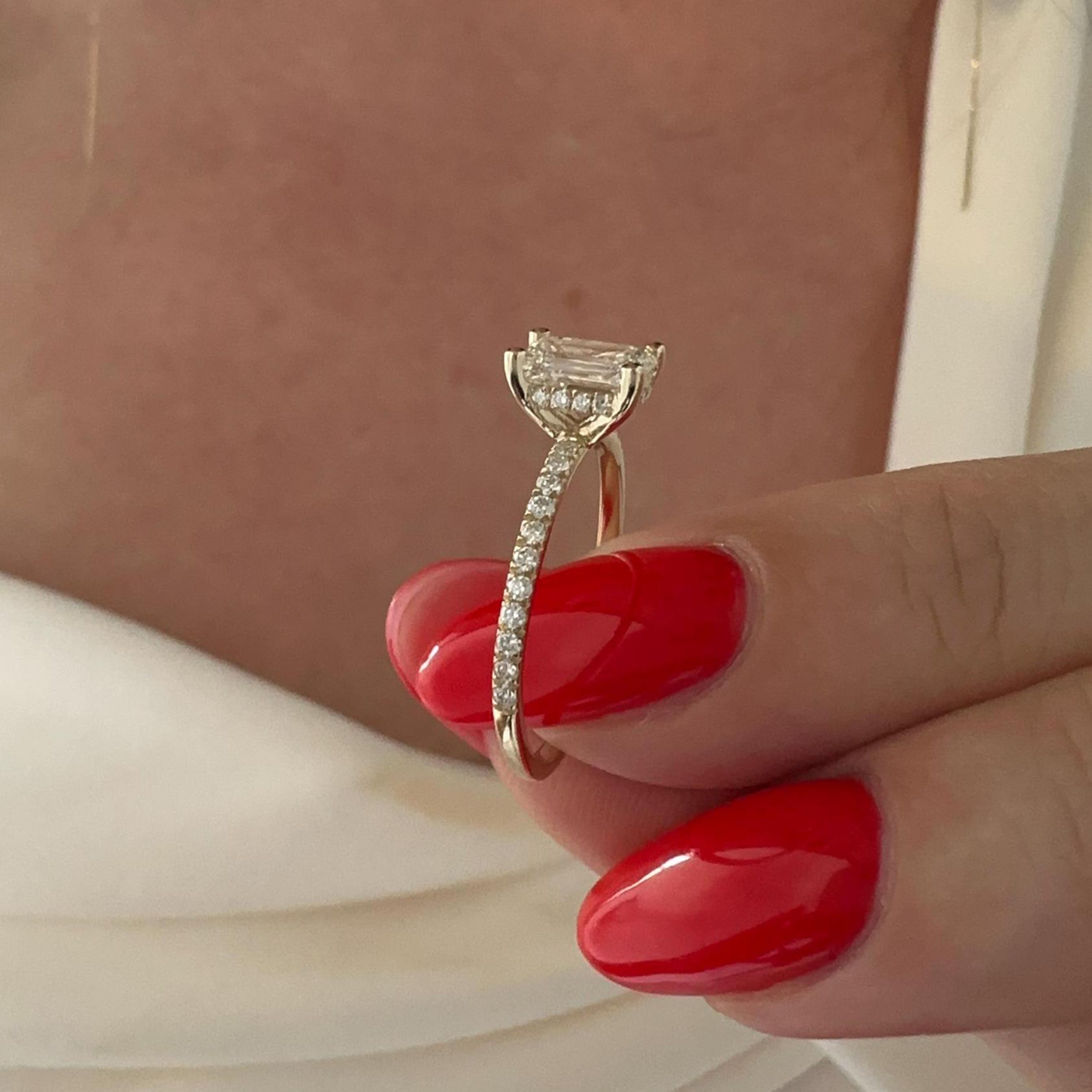2.50 CT Emerald Cut Moissanite Pave & Hidden Halo Style Engagement Rin – Darby Diamonds LLC