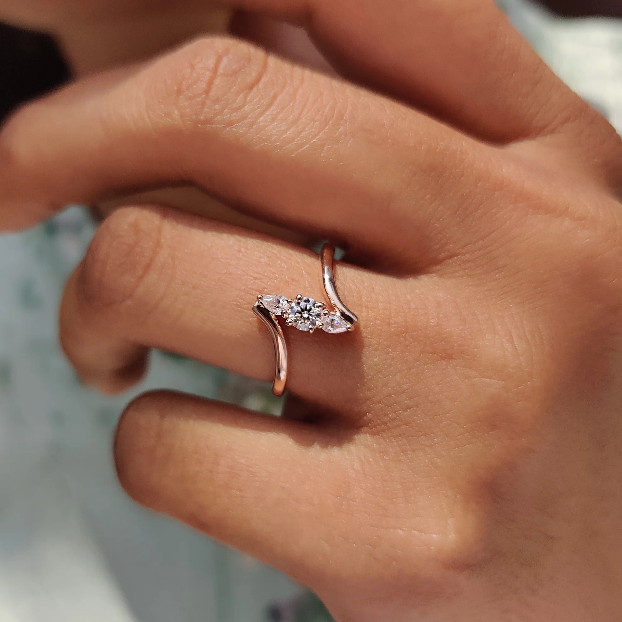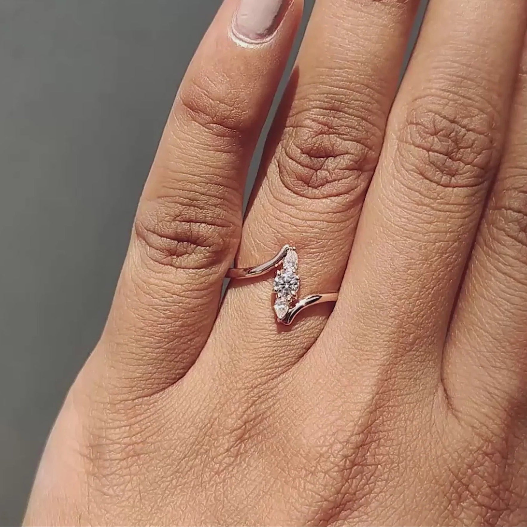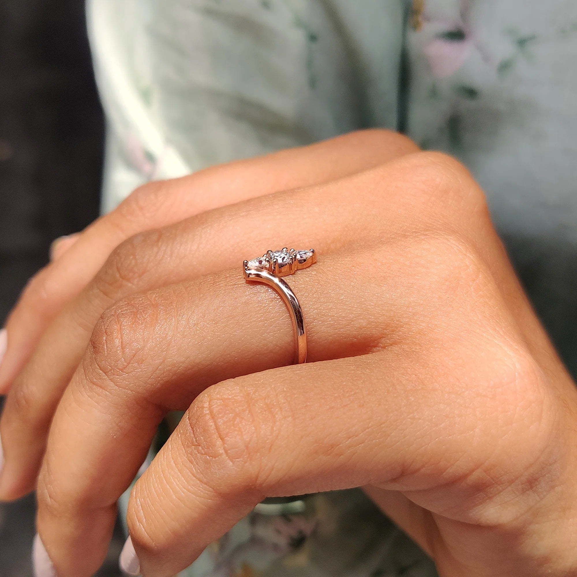 1 TWC Round & Pear Cut Moissanite Engagement Ring
