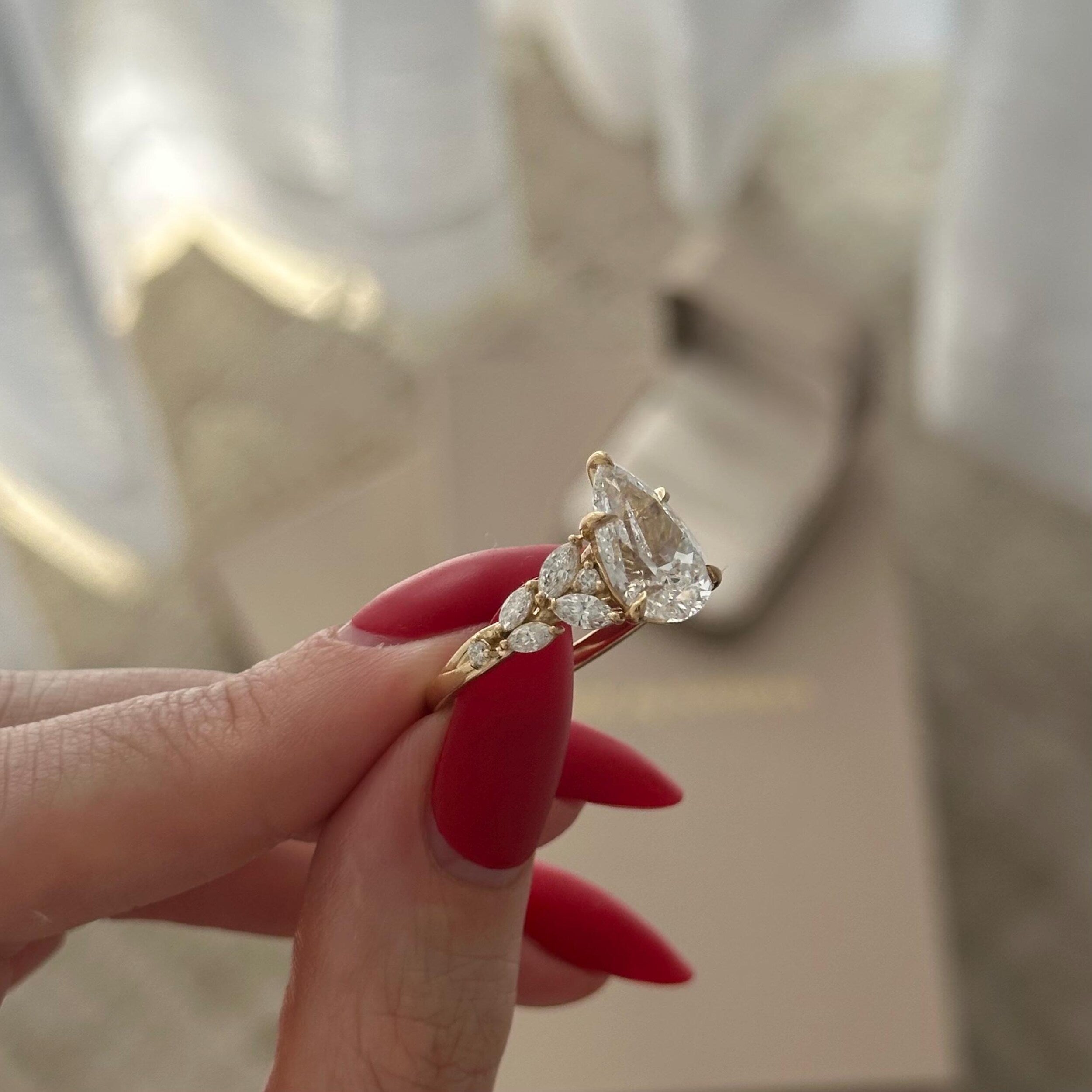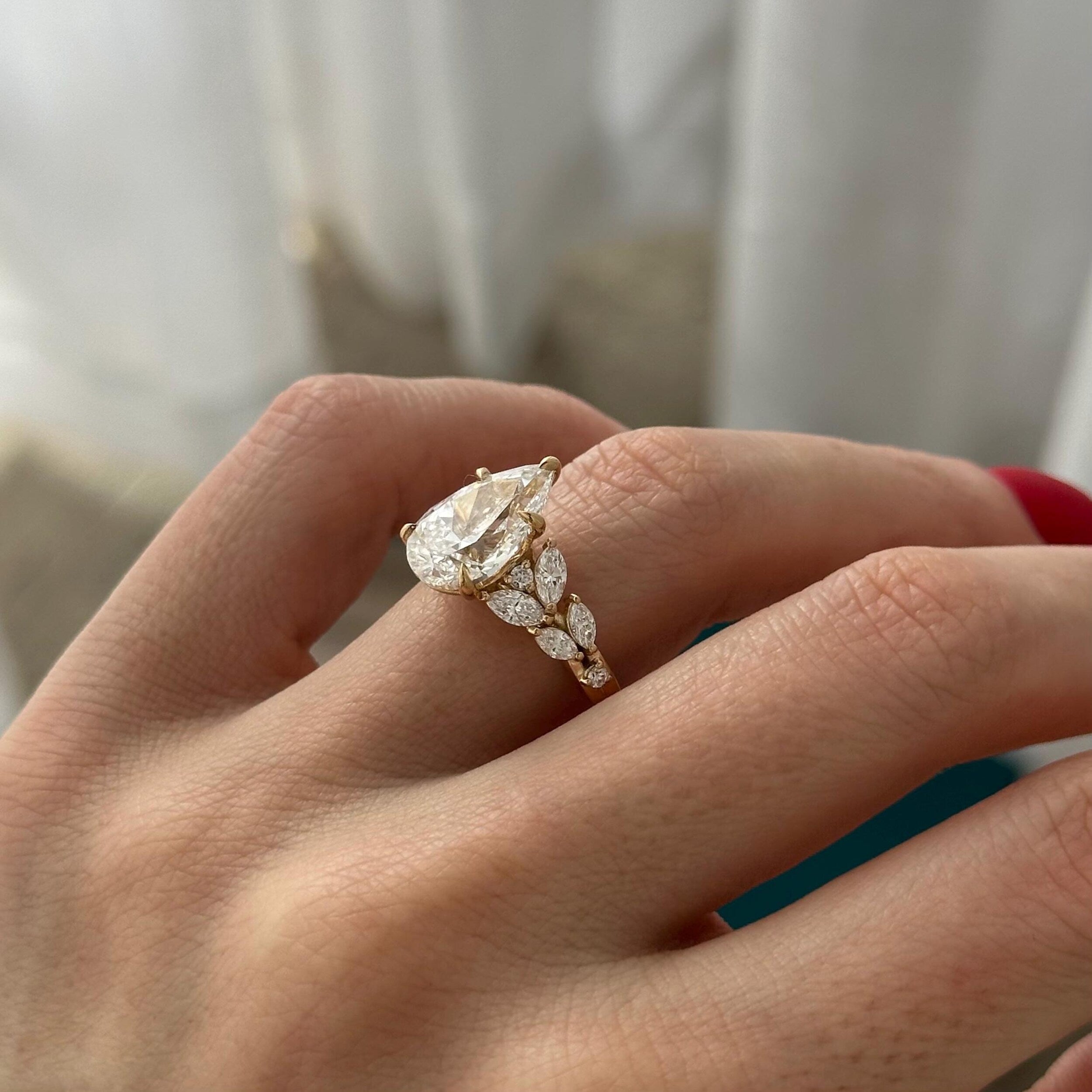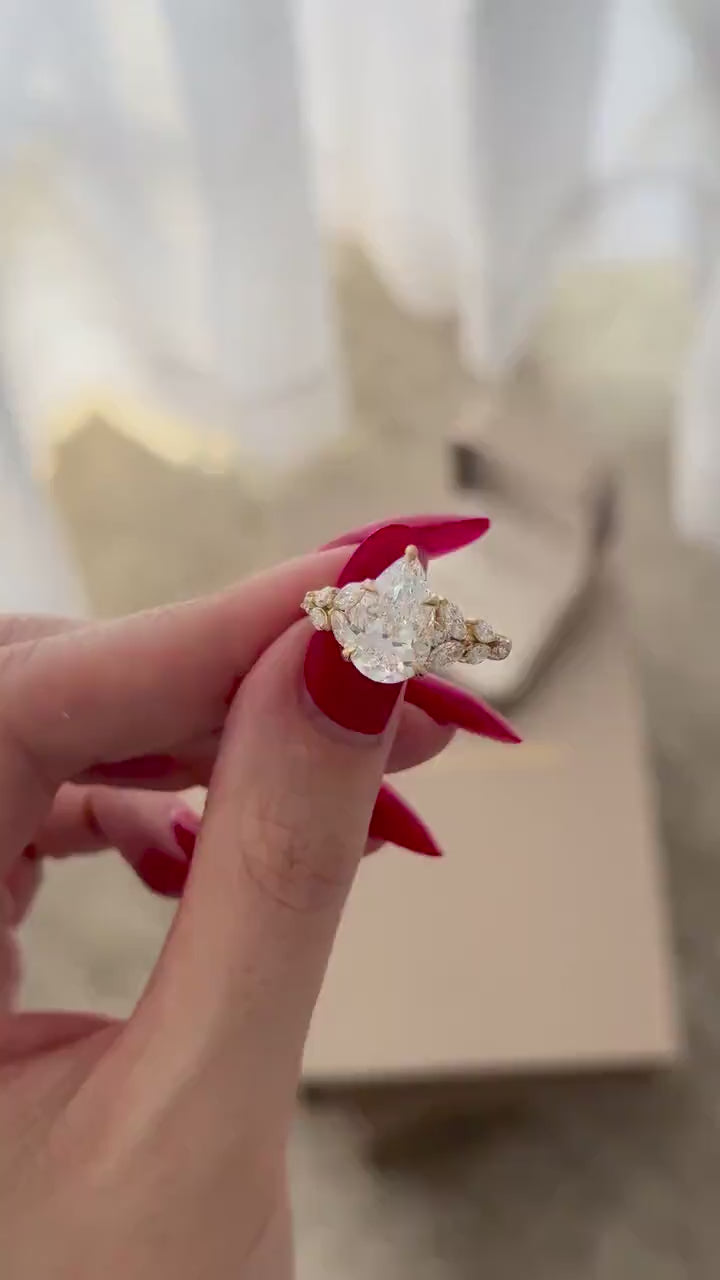 4.0 CT Pear Cut Moissanite Cluster Style Engagement Ring – Darby Diamonds LLC