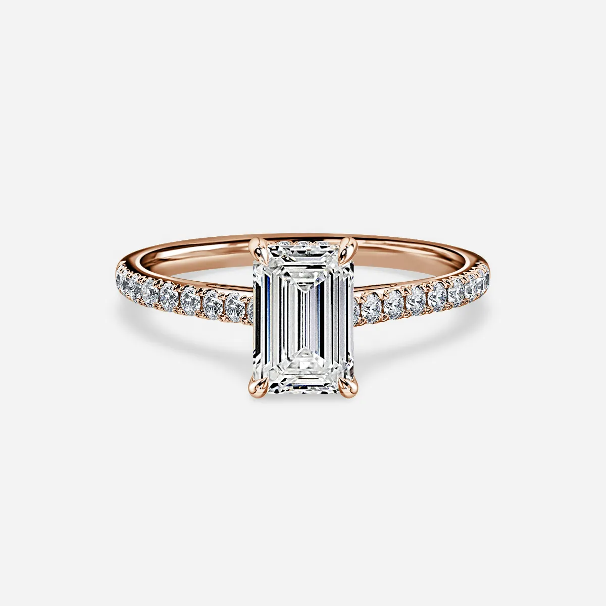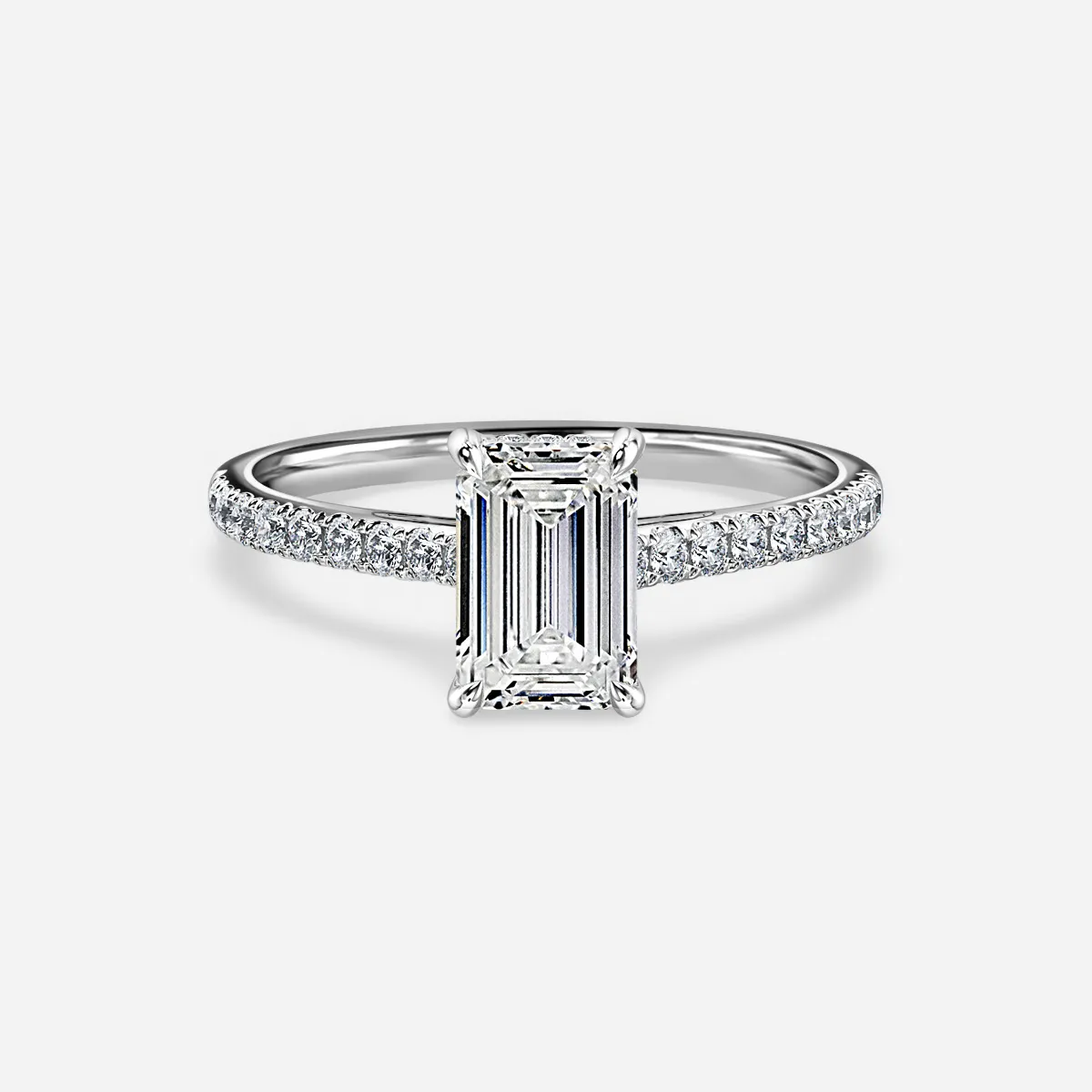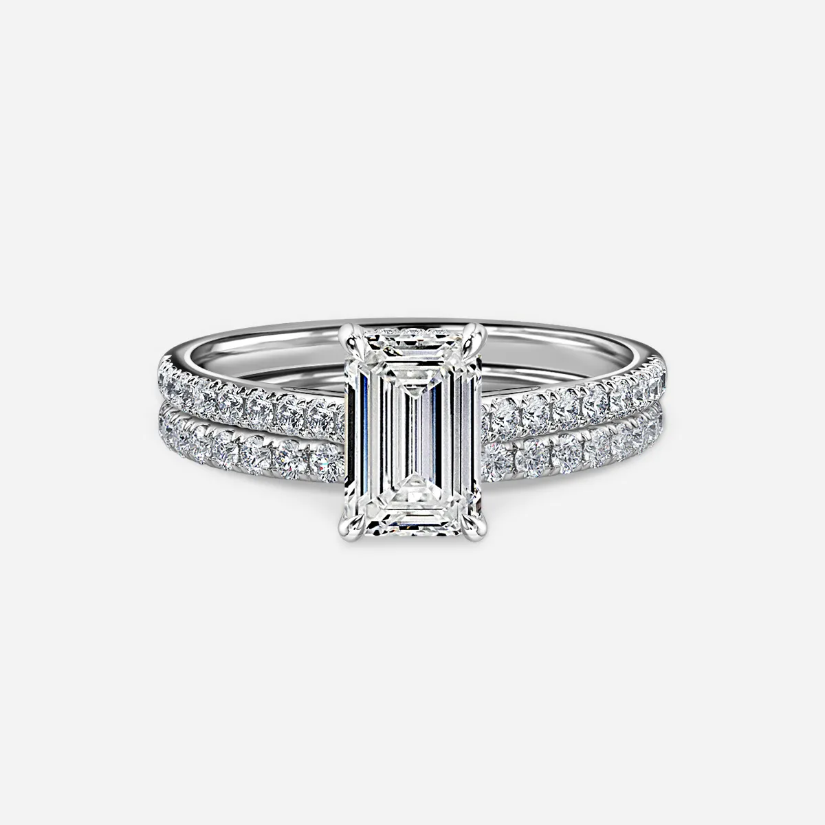 1.0 CT Emerald Cut Moissanite Hidden Halo & Pave Bridal Ring Set