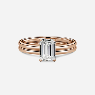 1.0 CT Emerald Cut Moissanite Solitaire Bridal Ring Set