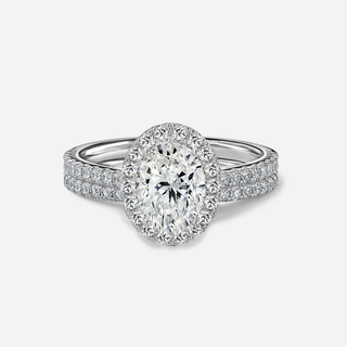 1.0 CT Oval Cut Moissanite Halo & Pave Bridal Ring Set