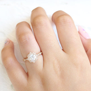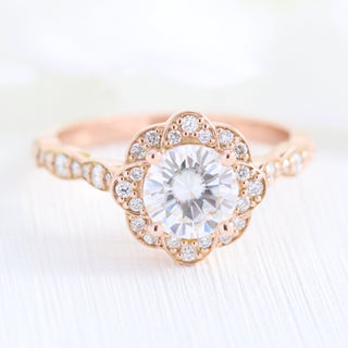 1.0 CT Vintage Floral Round Cut Diamond Moissanite Halo Engagement Rin – Darby Diamonds LLC