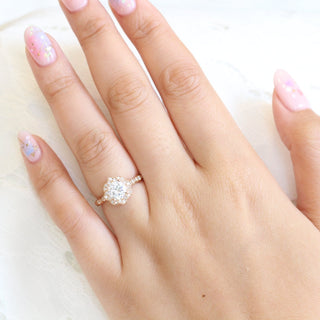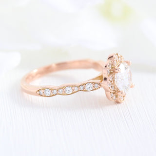 1.0 CT Vintage Floral Round Cut Diamond Moissanite Halo Engagement Ring