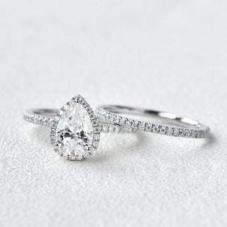 1.33CT Pear Cut Moissanite Halo Bridal Ring Set