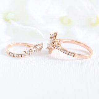 1.50CT Oval Cut Moissanite Halo Bridal Ring Set