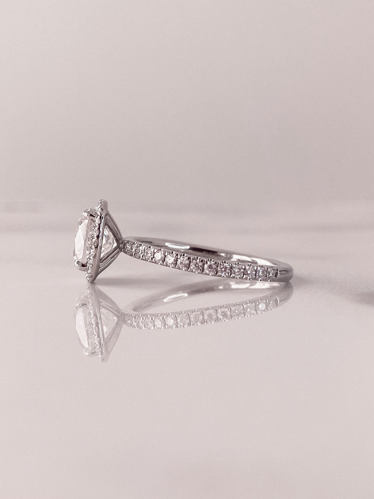 Cushion Cut Halo Style Moissanite Engagement Ring | Sparkling Elegance – Darby Diamonds LLC