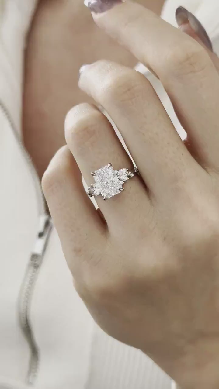 3.0 CT Radiant Cut Moissanite Cluster Style Engagement Ring