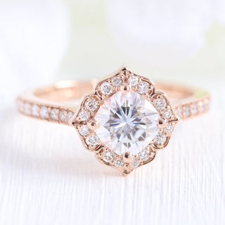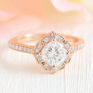 1.0 CT Cushion Cut Vintage Halo Style Moissanite Engagement Ring