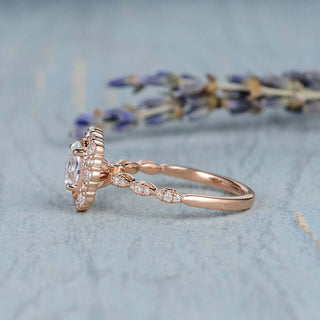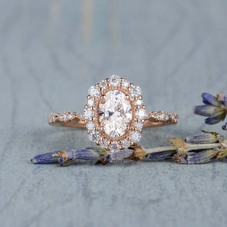 1.0 CT Oval Cut Halo Moissanite Diamond Engagement Ring