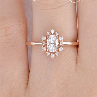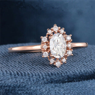 1.0CT Oval Cut Cluster Halo Style Moissanite Engagement Ring