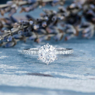 1.0 CT Round Brilliant Cut Pave Style Moissanite Engagement Ring