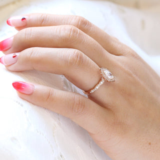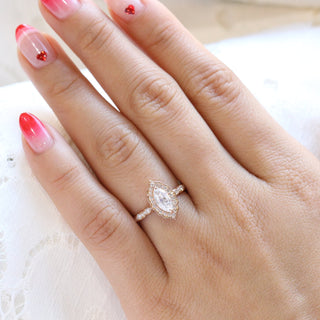 1.0 CT Vintage Floral Marquis Cut Diamond Moissanite Halo Engagement Ring