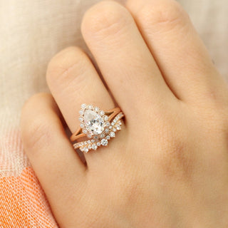 1.60CT Pear Cut Moissanite Halo Bridal Ring Set