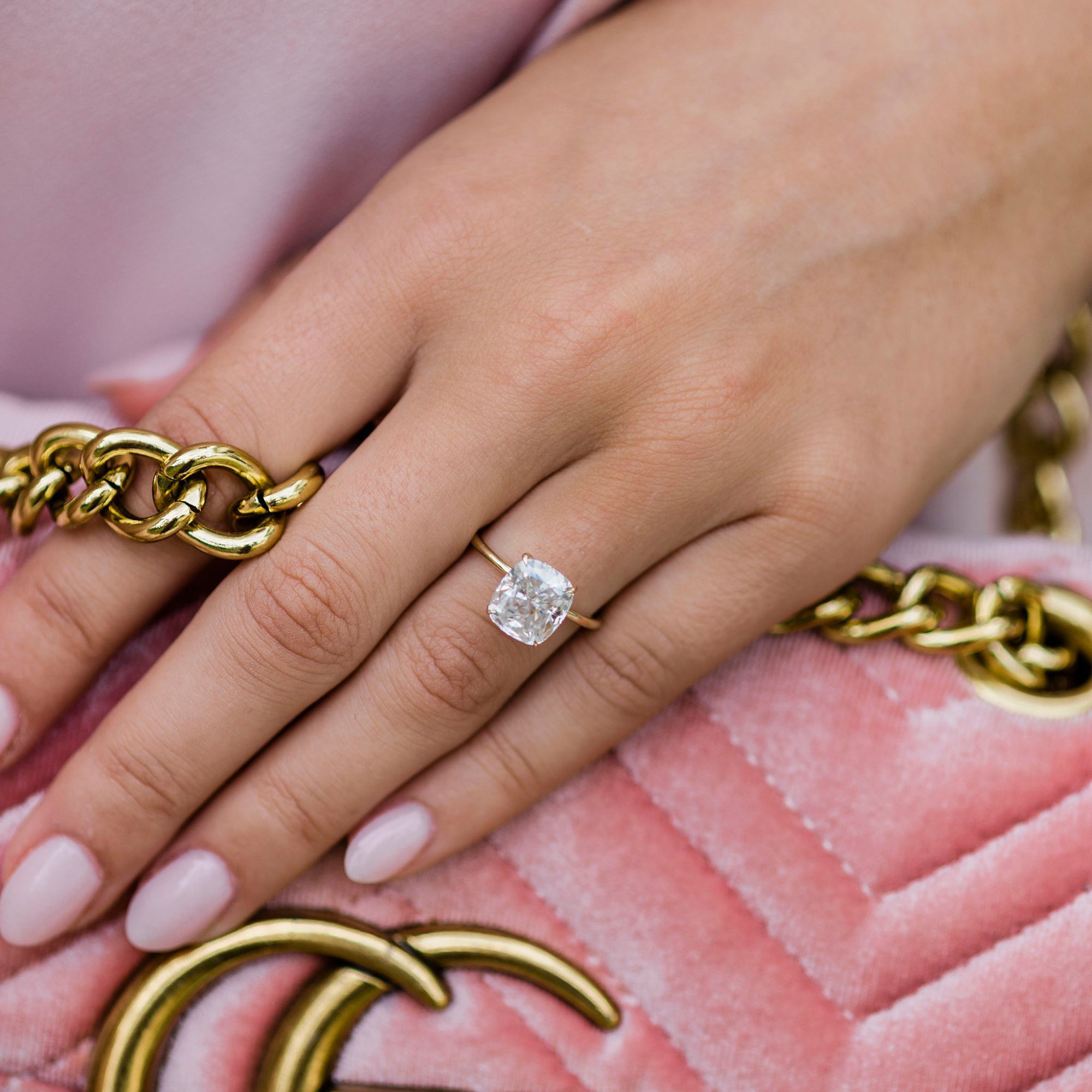 3.0 CT Cushion Moissanite Solitaire With Hidden Halo Setting Engagemen – Darby Diamonds LLC