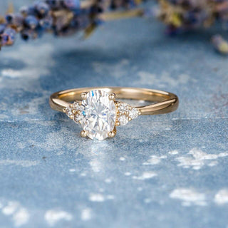 1.0CT Oval Cut Cluster Style Moissanite Engagement Ring