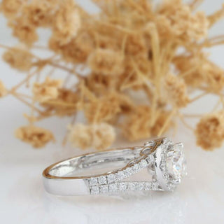 1.0CT Round Brilliant Cut Split Shank Halo Moissanite Engagement Ring
