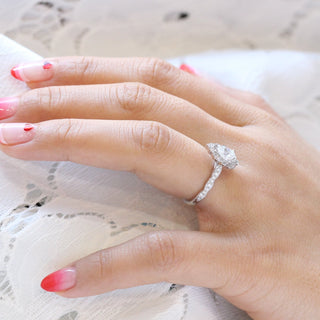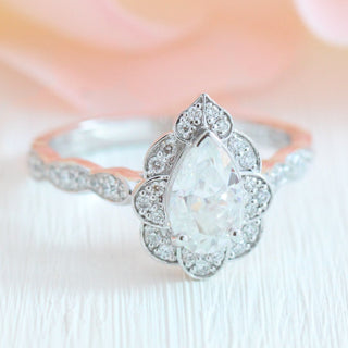 1.0 CT Vintage Floral Pear Cut Diamond Moissanite Halo Engagement Ring