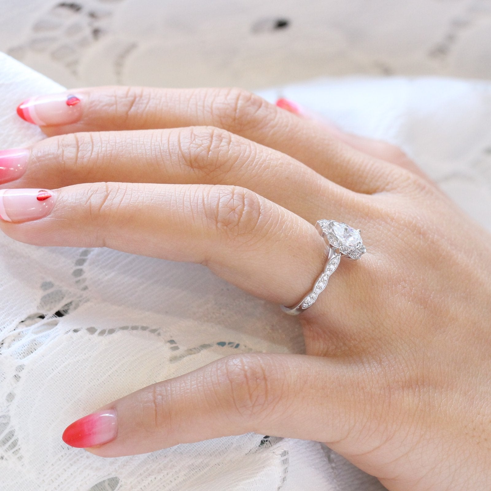 1.0 CT Vintage Floral Pear Cut Diamond Moissanite Halo Engagement Ring – Darby Diamonds LLC