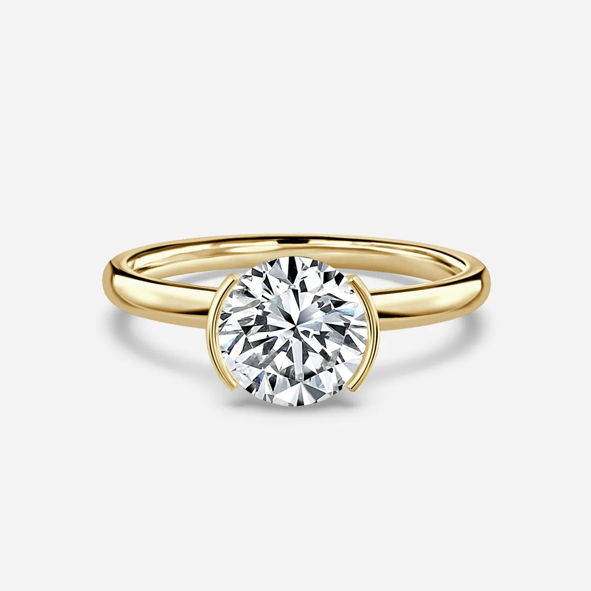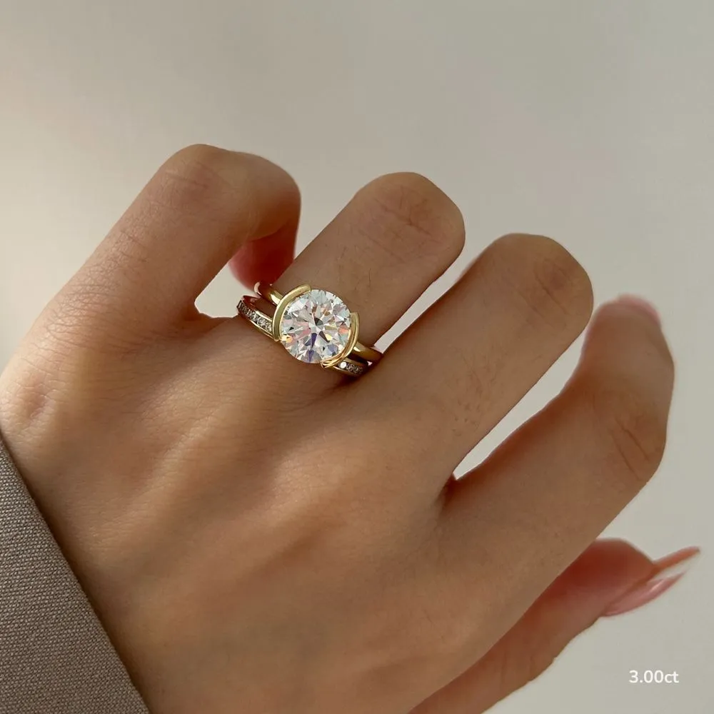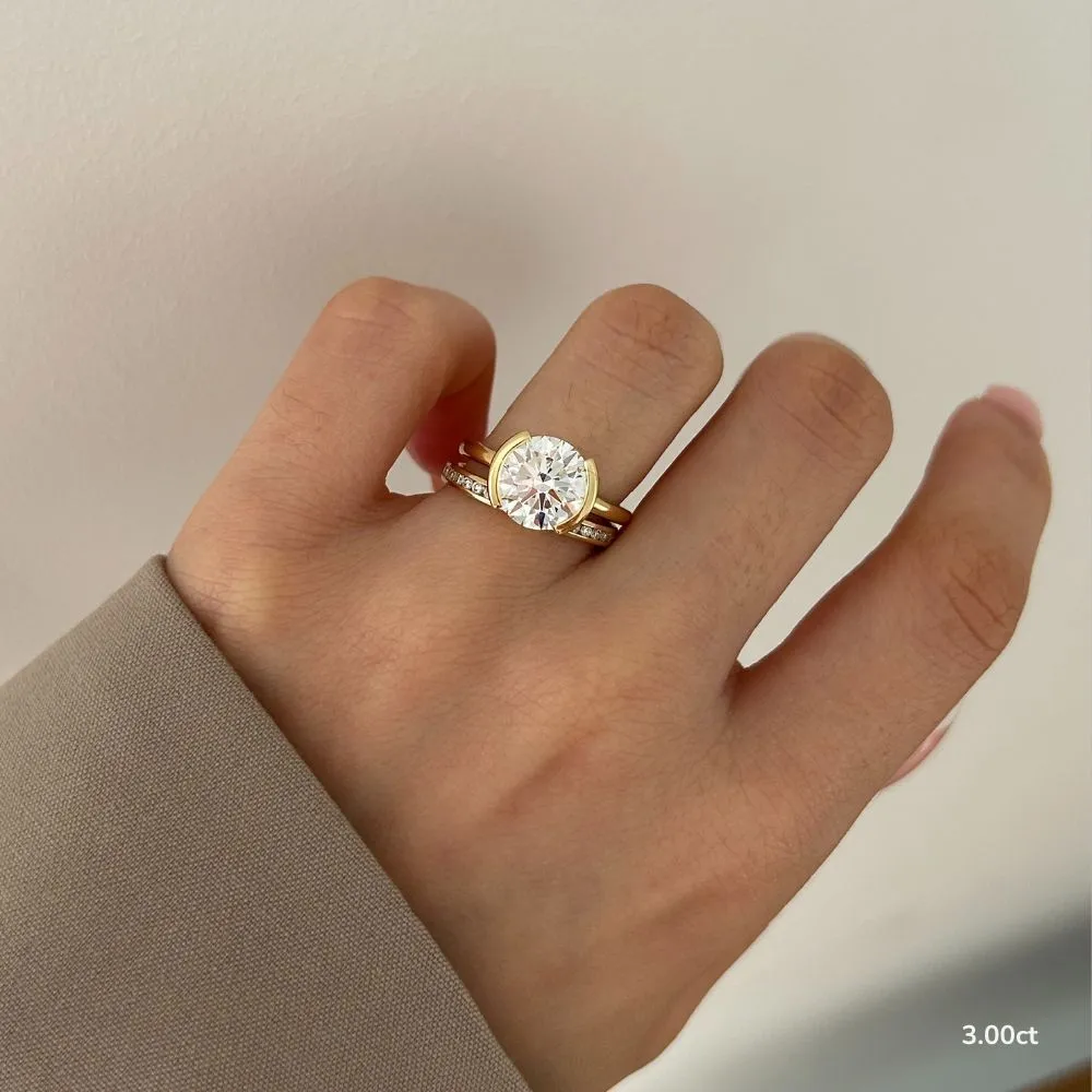 1.20 CT -3.0 CT Round Moissanite Half Bezel Engagement Ring – Darby Diamonds LLC
