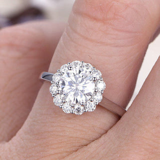 1.25 CT Floral Round Brilliant Cut Halo Moissanite Engagement Ring