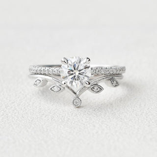1.28CT Round Brilliant Cut Moissanite Pave Bridal Ring Set
