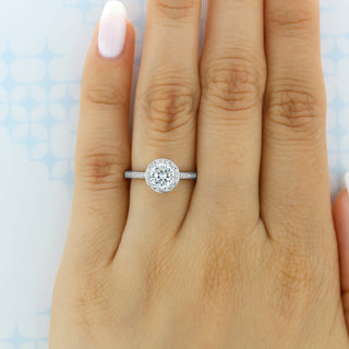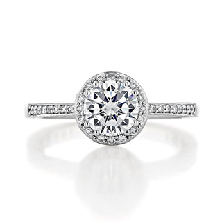 1.35CT Round Cut Halo Moissanite Engagement Ring in 18K White Gold