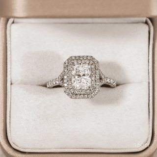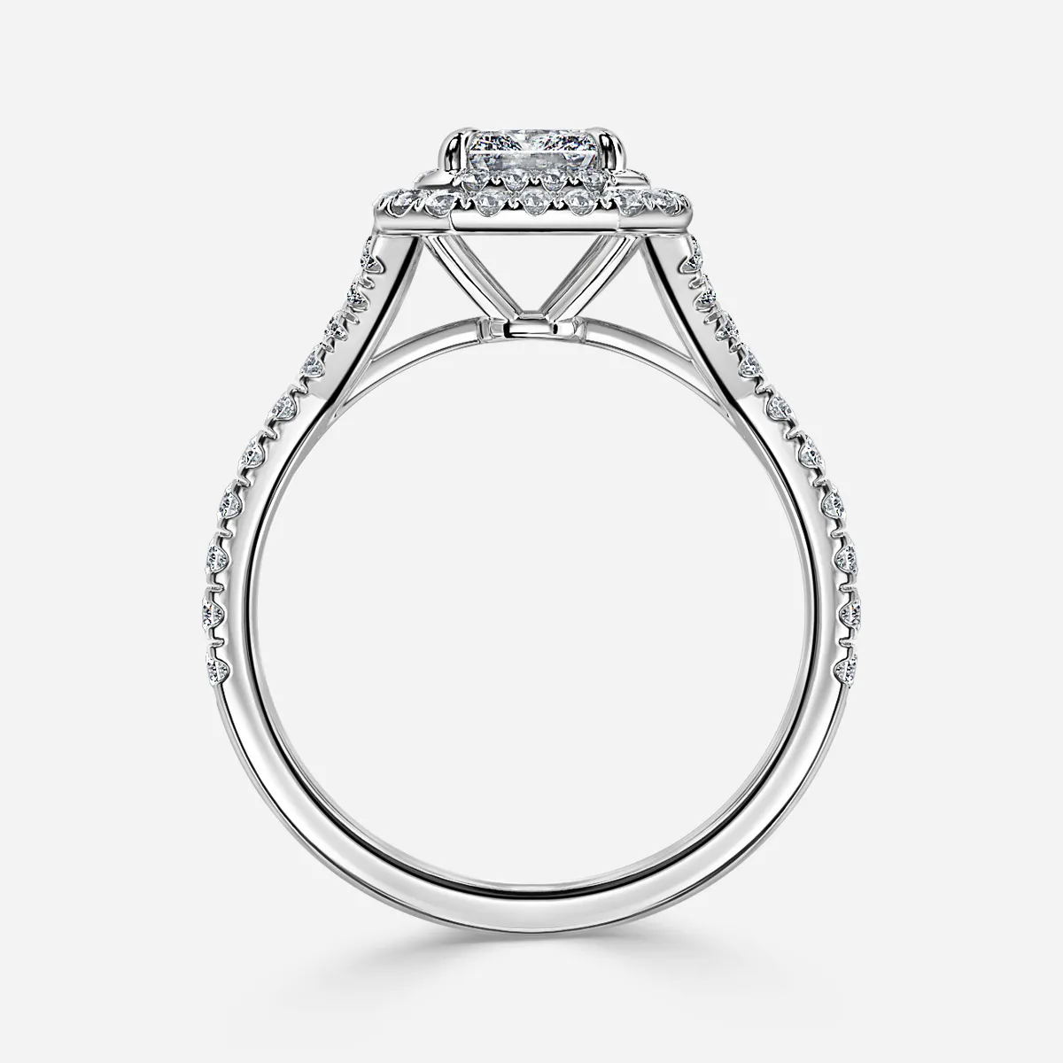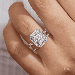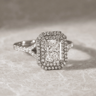 1.50 CT Radiant Cut Moissanite Halo & Pave Style Engagement Ring