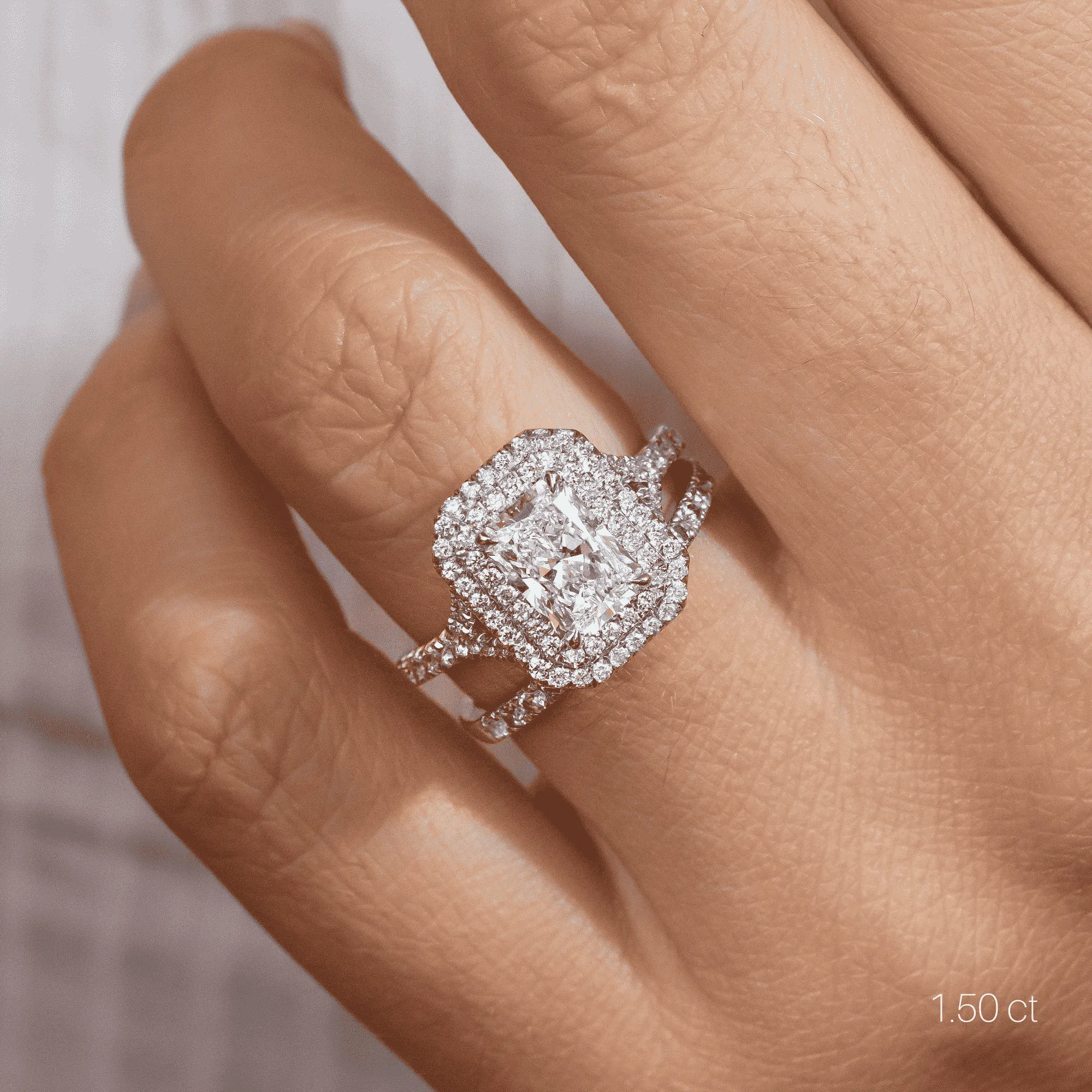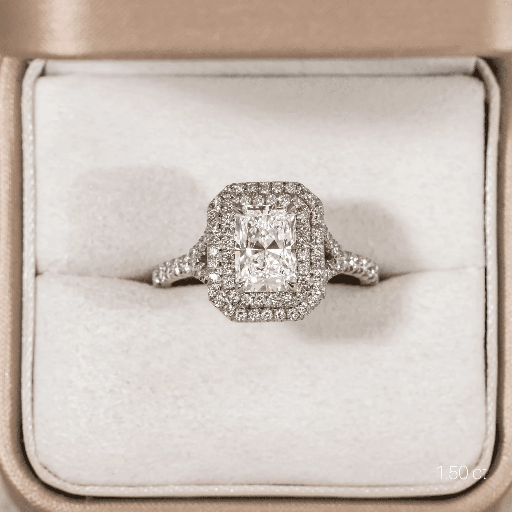 1.50 CT Radiant Cut Moissanite Halo & Pave Style Engagement Ring – Darby Diamonds LLC